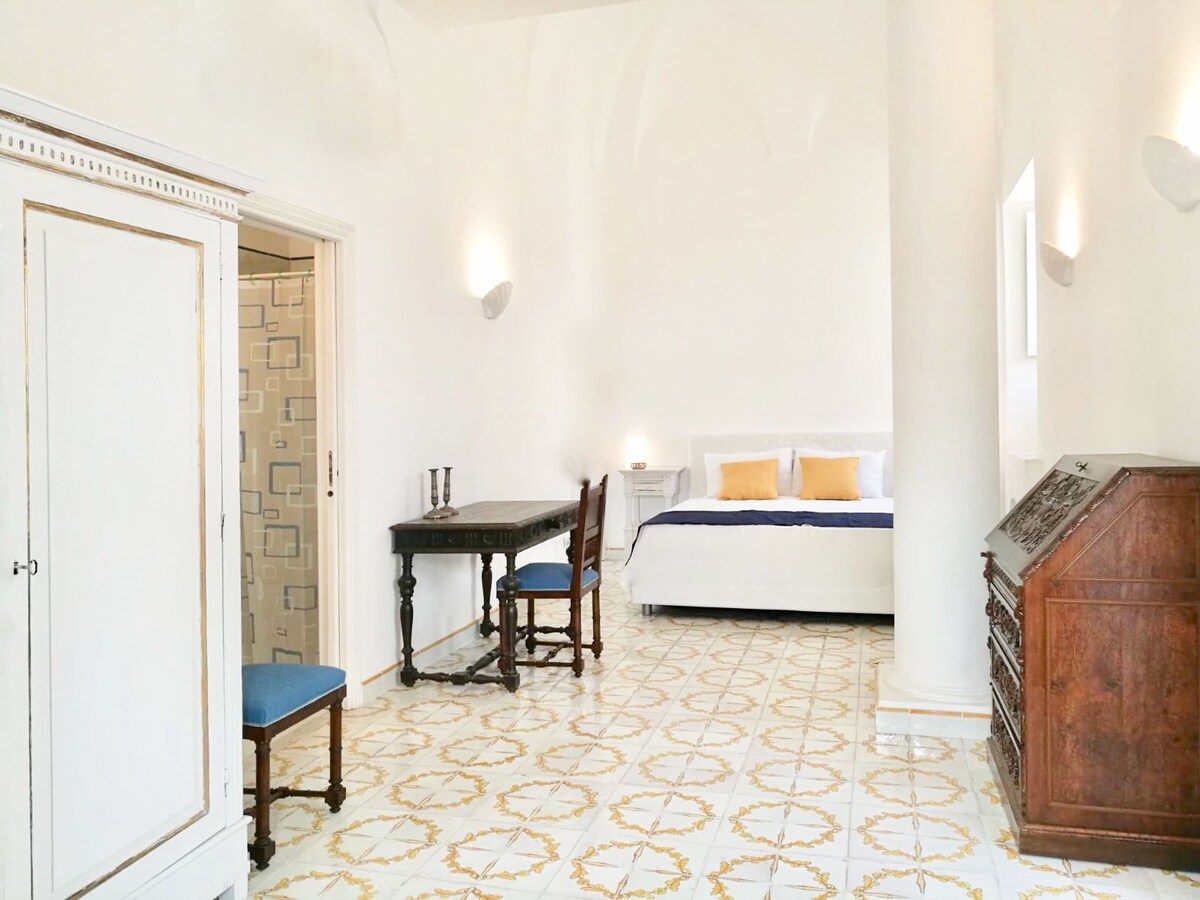 Donna Rita è un' elegante suite con bagno privato in un edificio storico del XVII sec. nel centro storico di Meta. Il palazzo si trova alle spalle della piazza principale, a meno di 2 minuti a piedi dalla fermata del bus, e 7 minuti a piedi dalla stazione. Vicino casa troviamo il celebre "Bar Romano" per la migliore colazione della penisola, diversi ristoranti e negozi locali. La suite è stata appena ristrutturata e mantiene il fascino antico misto con elementi moderni.