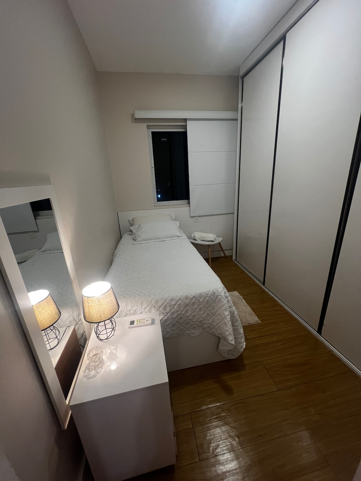 Piso grande con dormitorio 2 camas individuales o 1 cama doble, sala de estar, cocina, balcón, amueblado, con mesa, sofá, 2 televisores por cable, uno en la sala de estar y uno en el dormitorio; nevera, placa de cocina, 2 aparatos de aire acondicionado, dormitorio y sala de estar; internet, limpieza diaria; 1 espacio de estacionamiento. Recepción las 24 horas, restaurante/bar. Zona de ocio completa con piscina al aire libre, gimnasio, sauna, sala de juegos y una hermosa vista de la ciudad y el puente Río Negro. Excelente ubicación con tres centros comerciales cercanos.