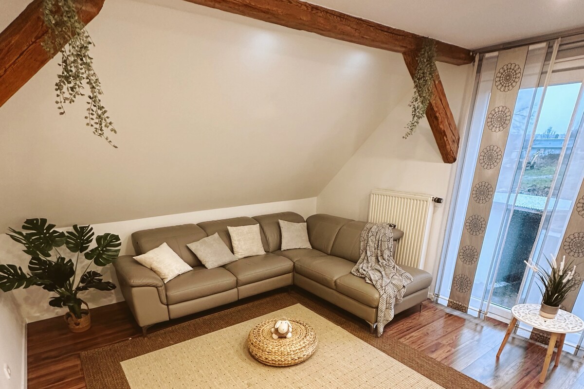 Apartamento amueblado con estilo en una casa adosada (nueva construcción) con el siguiente equipamiento: - Cama de 140 x 200 cm - baño privado - persiana eléctrica - Cafetera (incluye café) - Microondas combinado con convección - Nevera - Televisor - Wifi - Secador de pelo para invitados - Calefacción por suelo radiante - Control de ventilación central - Puerta insonorizada independiente con timbre/abrepuertas - Cómoda - Mesa de comedor - Vajilla - Aparcamiento gratuito - Posibilidad de carga de vehículos eléctricos - Equipamiento inicial incl. (ropa de cama, toallas)