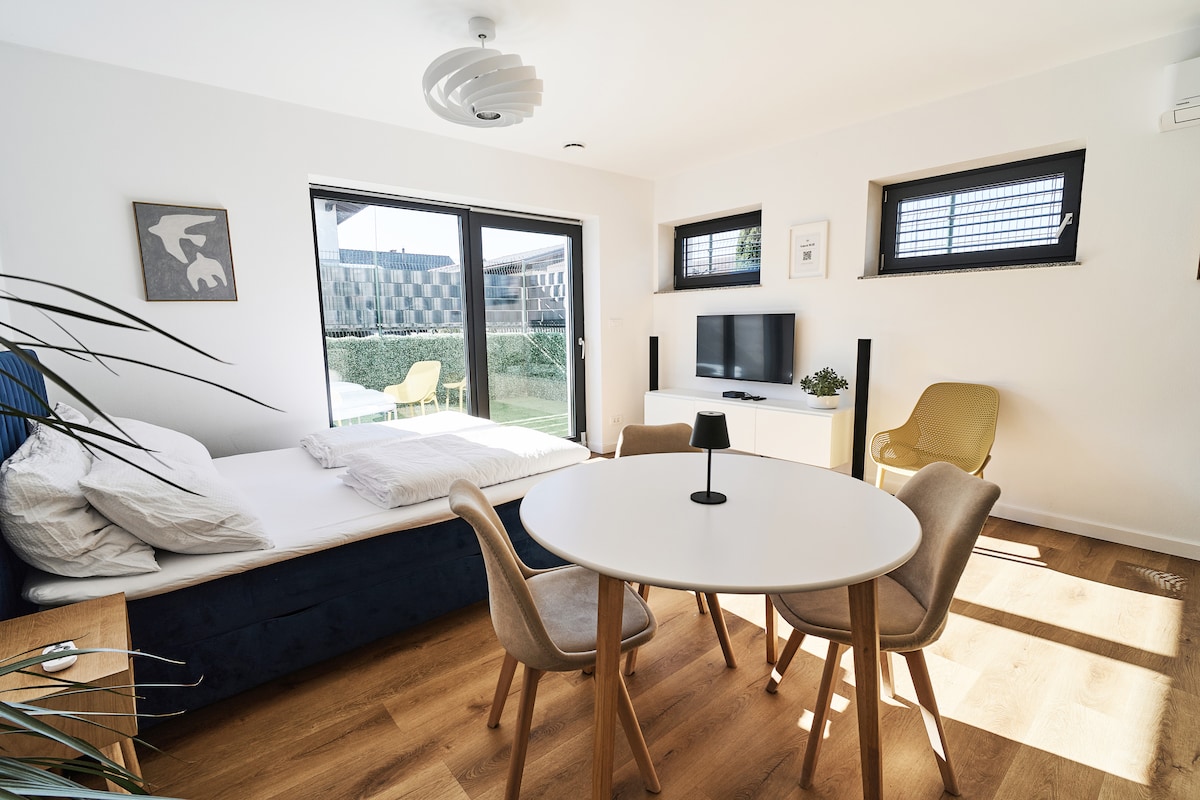 Brand NEW, perfectly located, modern and fully furnished luxury apartment. Less than 10 mins to the Ljubljana’s most charming part of the old town and just a few minutes walk from the main bus/train station. Free secure off-street parking in the garage under the apartment. Complimentary bikes and a beautiful private patio with outdoor sitting, perfect for lazy morning breakfasts, lounging and dining. Self-checkin. Ground floor-direct access.
