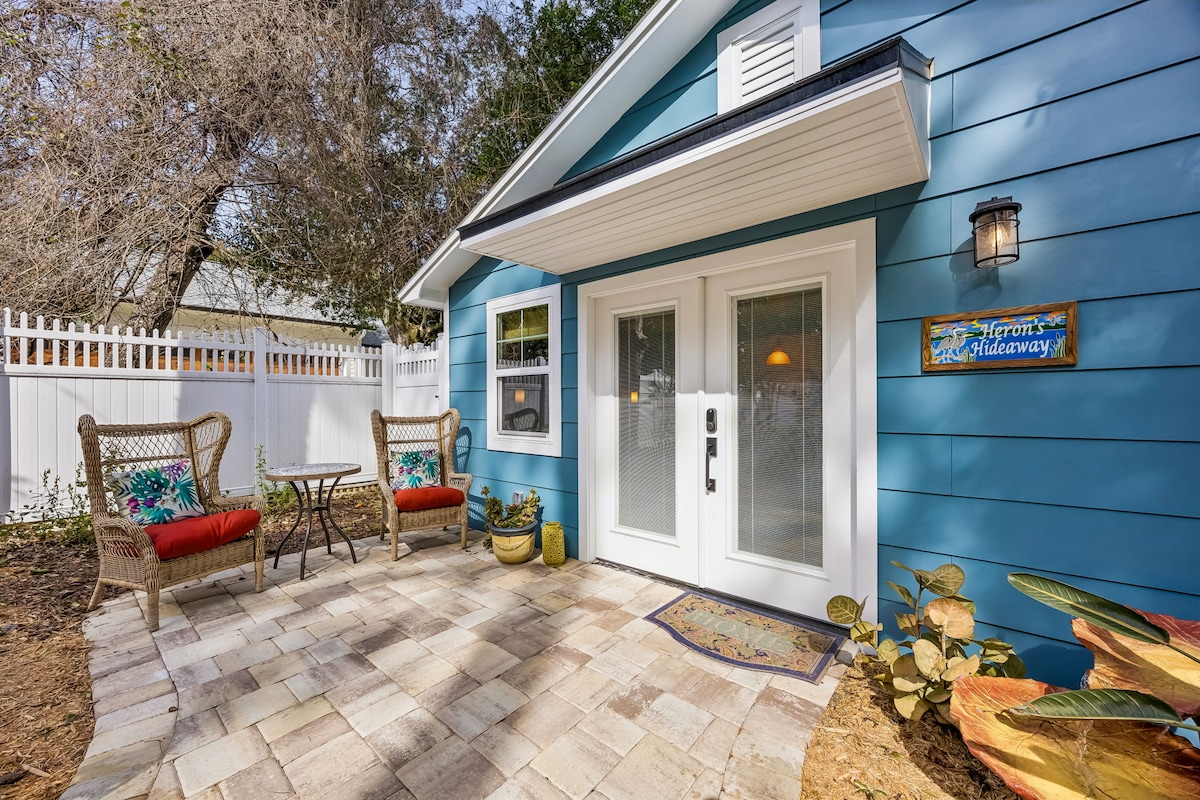 LIVE LIKE A LOCAL in your private, 2 room apt. under moss draped trees, at the center of beautiful Amelia Island! Our airbnbs are "conveniently secluded" amidst Amelia's gorgeous trees just 1 mile from the beach, and located on 1 of only 11 protected "canopy roads" in Nassau County! Mornings in your garden are dappled by tree-filtered sunshine & filled w/ birdsong. Afternoons/evenings are draped in shade and frequented by the sounds of pileated woodpeckers & barred owls! Come and enjoy! 😀