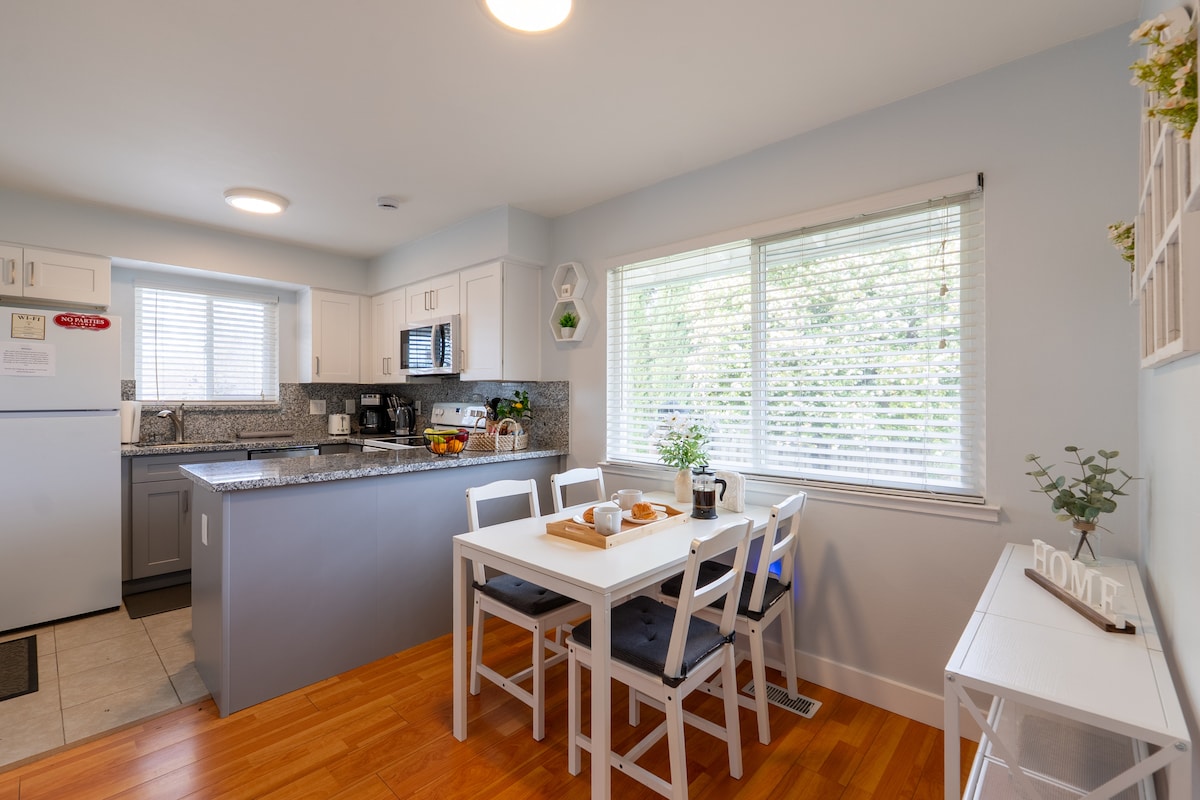 Casa de huéspedes privada de 800 pies cuadrados actualizada en una gran finca con gran habitación, cocina totalmente equipada, lavadora/secadora, dormitorio, estación de carga EV gratuita, piscina y spa siempre climatizado. La piscina y el spa son exclusivos para los huéspedes y no se comparten durante tu estancia. La propiedad se encuentra en el deseado barrio de Fab Forties. A poca distancia a pie de cafeterías, restaurantes, microcervecerías, bares, parques y a pocos minutos del centro de la ciudad. Si prefieres montar en una bicicleta Jump o Uber para desplazarte, hay muchas cerca.