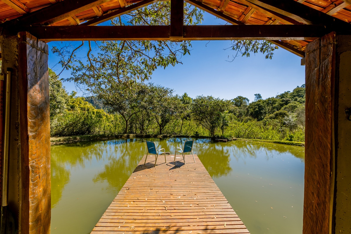 Un espacio propio de aprox. 2.000 m2, un verdadero refugio cerca de la capital de São Paulo que te proporcionará momentos de descanso, bienestar y conexión con la naturaleza Una experiencia de vivir en el campo, con vista a las montañas, despertarse con el canto de los pájaros y un espectacular amanecer. Una casa de campo totalmente equipada con todo lo necesario, con bañera de inmersión, mini pista polideportiva, ¡lago ornamental rodeado de naturaleza!