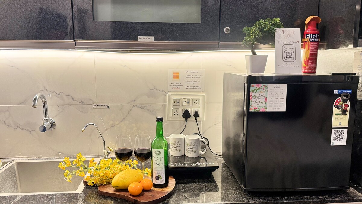 • Newly built, fully private1st floor apartment • 3 king-size bedrooms, 2 bathrooms, huge living & balcony with green views • Modular kitchen, induction plate, RO water & basic cookware. Swiggy/Zomato/Instamart/Blinkit available • Split ACs, optional heating, LED wall panels, & optional karaoke nights • Prime city-center location: Close to Golden Temple, local shops-eateries • Family & group-friendly, quiet calm residential vibes • Personalized local guidance from host & premium comfort