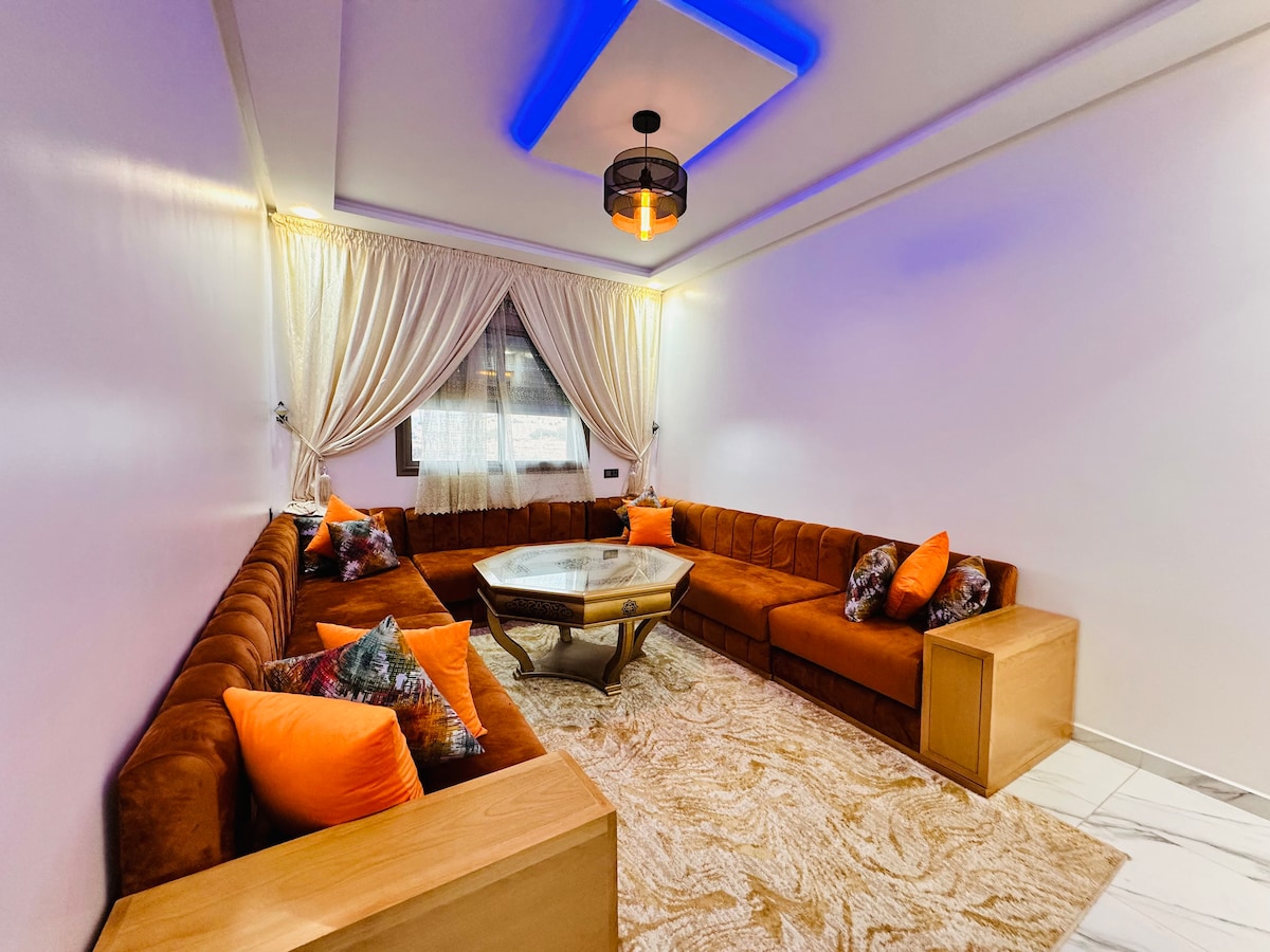 Just 30 minutes from Agadir, this 400 sqm luxury villa in a secure residence offers complete privacy, comfort, and tranquility. It features 5 private suites with en-suite bathrooms, a large pool, and a complimentary traditional hammam. The 1,500 sqm landscaped garden with a play area and outdoor lounge with fire pit creates the perfect setting to relax. Blending contemporary design with Moroccan charm, it’s ideal for high-end stays with family or friends.