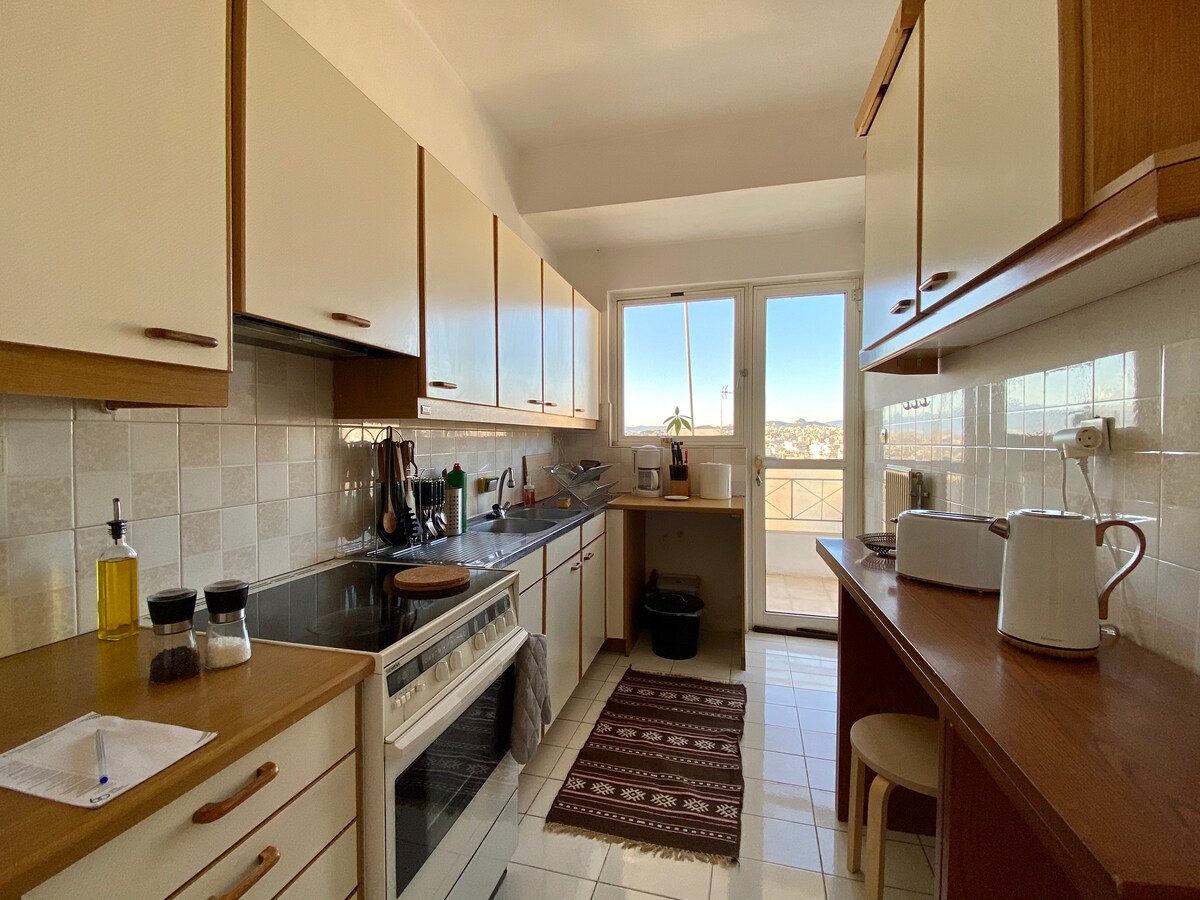 A comfortable, luminous 4th floor apartment (90 sq.mtrs/970 sq.ft), with a great panoramic view of the city of Athens, Acropolis, Lycabettus hill and the mountains. Earthly tones, bamboo touches and Indian ceramics set the vibe through a minimalistic, relaxing approach. The apartment is in the heart of Palaio Faliro area, also known as the Athenian Riviera where you can enjoy the delightful seaside (5' walk) or head to the centre of Athens through a 15' drive or using the Tram, Bus or Scooter.