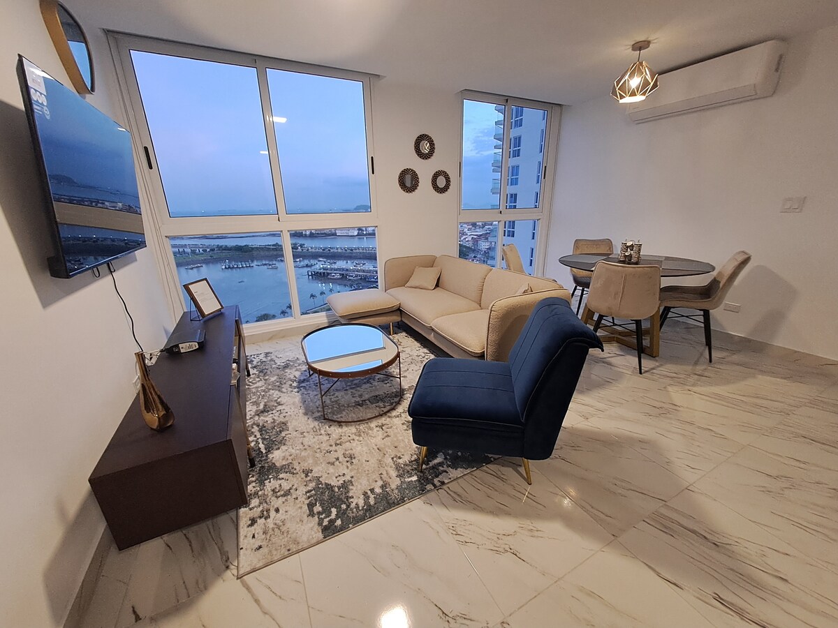 Apartamento familiar para estrenar frente a la cinta costera de Panamá, WI FI 150 Mbps, NETFLIX, PRIME VIDEO, MAX, piso alto, ascensor, aire acondicionado, piscina infinita, parqueadero privado, estación de metro a 5 min caminando funcionado hasta el aeropuerto de Tocumen, centro de lavado, calentador de agua, cocina, excelente vista y ubicación.......