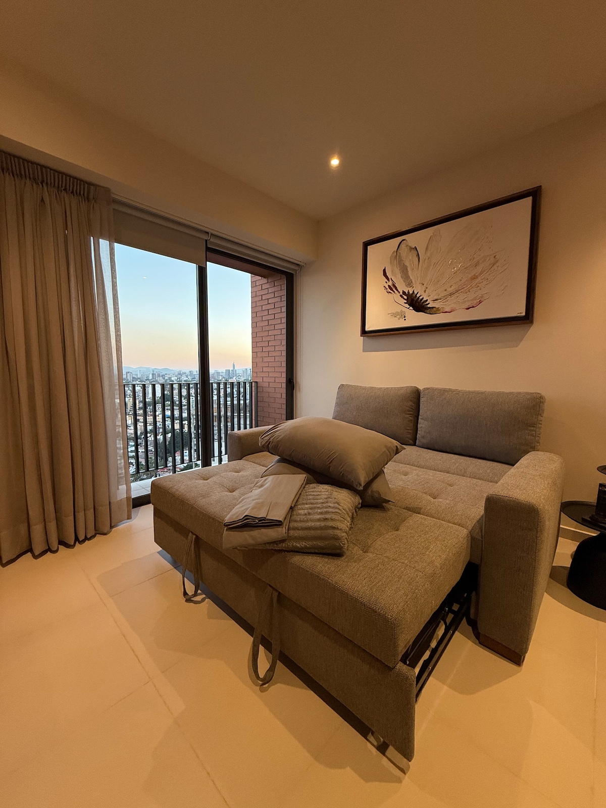 Disfruta de una estancia de lujo en este moderno estudio ubicado en The Lighthouse, una de las torres más exclusivas de Zapopan. Ideal para parejas, viajeros de negocios o escapadas de fin de semana, este espacio combina diseño, confort y una ubicación inmejorable. Cuenta con cama king size, wifi , cocina equipada y TV de 55 pulgadas. Amenidades tales como alberca, gimnasio y roof top. Ubicado a solo 5 minutos de Andares, rodeado de restaurantes, centros comerciales, cafés y supermercados.