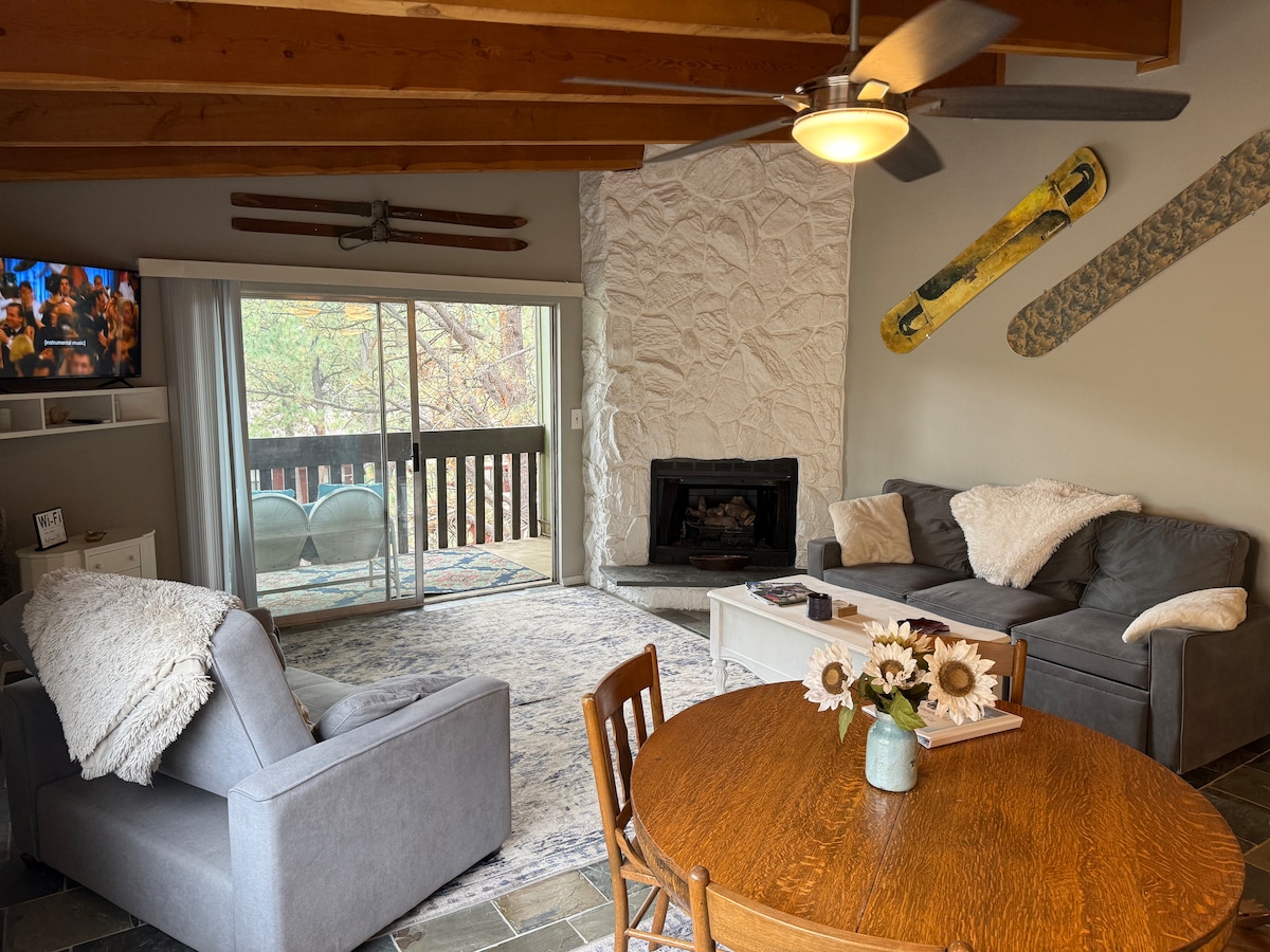One block off the main drag, this beautiful two bedroom, two baths, ground floor corner condominium, accommodates six. It is located only two blocks from the resort which includes ski lift, slopes, restaurants, bars, and shopping! During the summer months there are wonderful mountain biking trails starting right outside the condo. No need to even leave the comfort of the fireplace if you desire, the condo is set up with a complete kitchen, dining area, and laundry room.