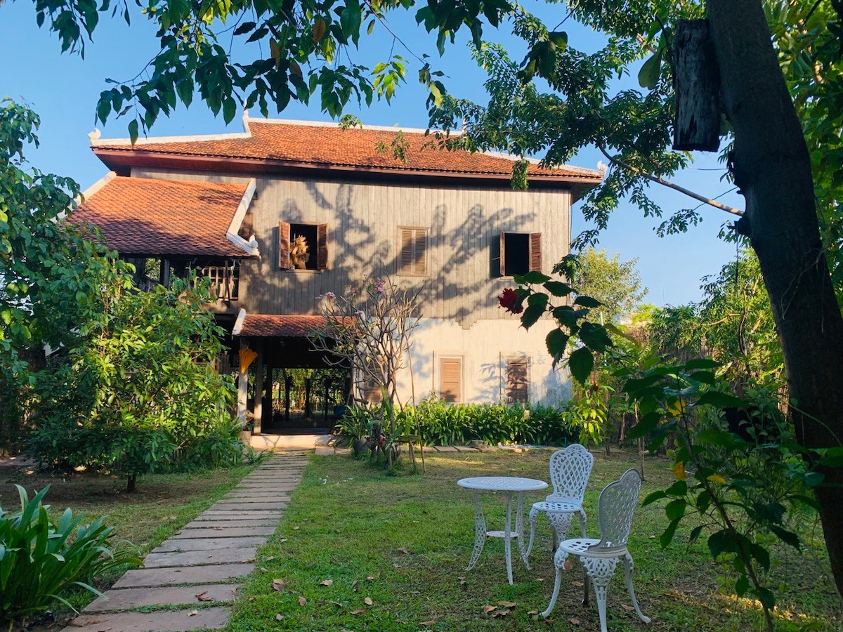 Villa de estilo jemer natural con 12 unidades rodeadas por un hermoso jardín. Hay una piscina, un comedor exterior e interior. Nuestra cocina sirve desayuno, almuerzo y cena. También podemos organizar una clase de cocina casera para ti. Estamos ubicados en una zona tranquila a 2,5 km del centro de la ciudad, la calle de los bares, el mercado nocturno y justo detrás del circo, junto a la granja de equitación y paseos en quad. Tenemos tuk tuk disponible en cualquier momento.