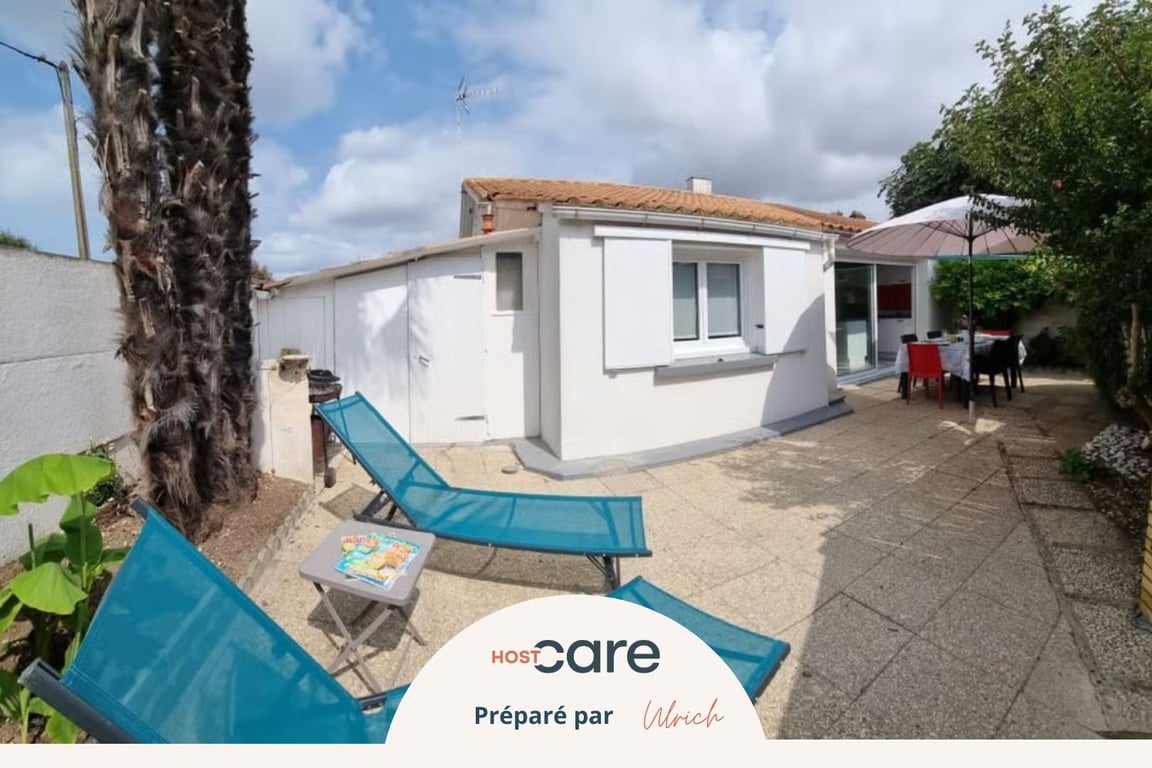 Notre maison est chaleureuse, fonctionnelle, avec un jardinet. Elle se situe à Sainte-Marie-de-Ré, dans une ruelle typique de l'ile de Ré, à 500m de la plage et 200m de la place d'Antioche (ou vous trouverez tous les commerces : boulangerie, boucherie, tabac-presse, restaurant, locations de vélos...). Cette maison peut accueillir 4 personnes. Elle se compose d'une belle pièce à vivre, d'une cuisine équipée, de 2 chambres, une salle d'eau, wc séparé . Le jardin arboré est très agréable.