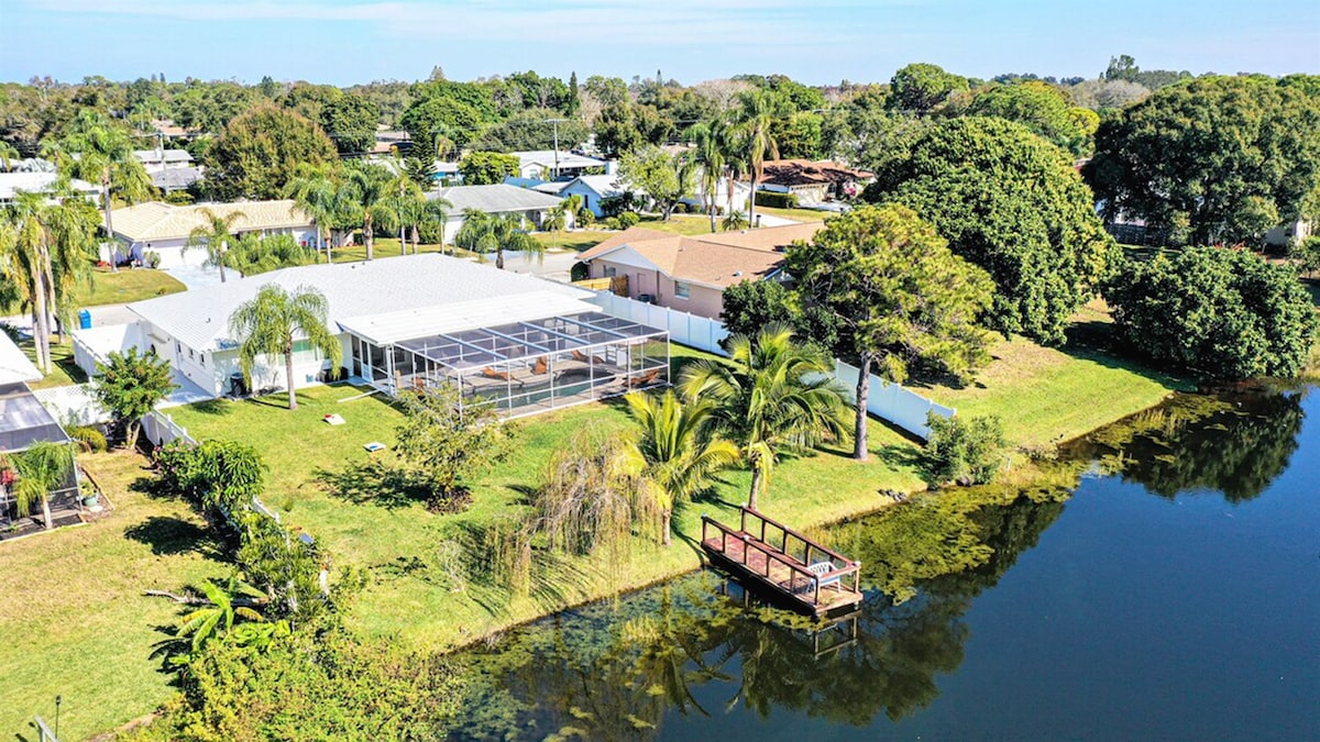 - Frente al mar estilo resort. - Independiente. - Jacuzzi. - Vistas al amanecer/atardecer en el muelle. - Kayaks gratuitos. - Internet/cable de YouTube. - Televisor inteligente de 65 pulgadas. - Amplio dormitorio con cama tamaño king, vestidor y TV de pantalla plana. - Lavadora y secadora en el alojamiento. - Espacio de trabajo designado. - Se admiten mascotas. - Patio privado vallado. - Aparcamiento gratuito para 2 coches/barcos. - Ubicación céntrica (playas, restaurantes, Tampa, St. Pete's, Safety Harbor, Dunedin). - A 11 minutos de la sala de eventos Ruth Eckerd. - Limpieza impecable. - Zona de café. - Comedor.