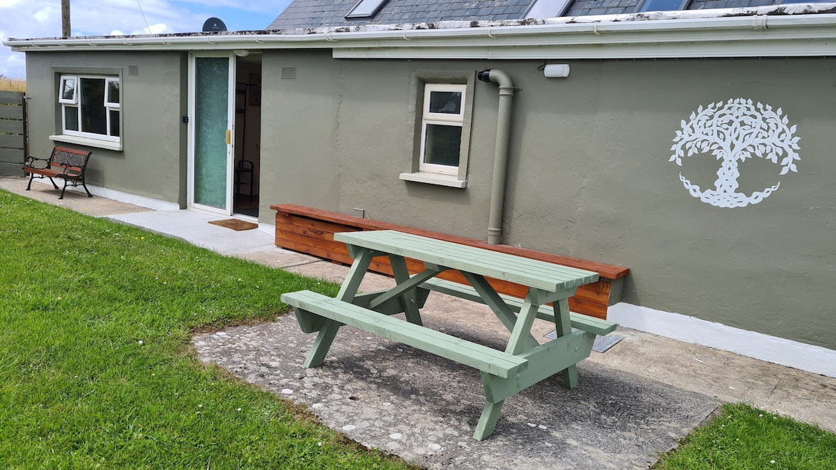 Separado , privado y acogedor, ubicado en un lugar idílico y tranquilo. Departamento independiente de 1 dormitorio en un entorno rural rodeado de vistas panorámicas del campo hasta el mar. A 4 km de tres hermosas playas y pueblo de Milltown Malbay ( hogar del famoso Willie Clancy Music Festival ) a 10 km de Lahinch y Cliffs of Moher. Sala de estar/ cocina de buen tamaño: TV, encimera de gas y horno eléctrico. Dormitorio doble con ducha potente Anfitrión amable. Calefacción a gasoil, estacionamiento.