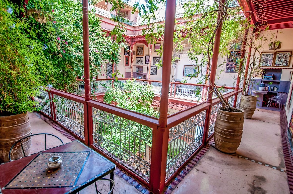 ¡Quedate en un encantador riad en el corazón de la medina de Marrakech! Nuestro riad cuenta con 5 habitaciones auténticas, cada una con baño privado. Este anuncio es solo para una habitación, y podés elegir tu favorita a tu llegada. Disfrutá de una mezcla única de tradición marroquí y comodidad moderna, perfecta para parejas, viajeros solitarios o amigos. A solo unos pasos de zocos, monumentos y restaurantes locales, es el punto de partida ideal para una experiencia inolvidable en Marrakech.