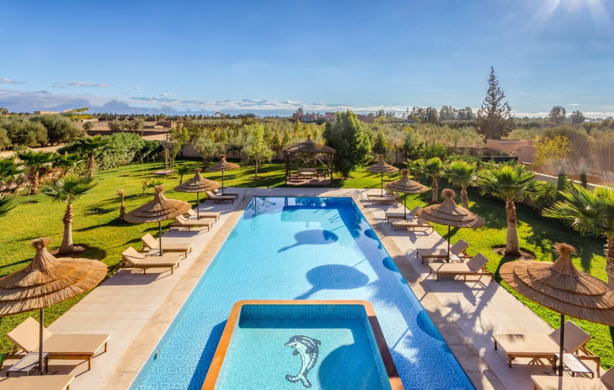 ✨ Nuevo resort con piscina y servicio 24/7: lujo a 15 min de la Medina ✨ Tu bungalow de lujo en un complejo de 20 000 m². Disfrutá de total privacidad y acceso compartido a las lujosas instalaciones. ✔ 2 piscinas rodeadas de palmeras y zonas de estar Servicio ✔ las 24 horas, los 7 días de la semana, para todas ✔ Ideal para parejas que buscan lujo y serenidad cerca de la ciudad 🩶 Si este anuncio ya no está disponible, envíanos un mensaje. Ofrecemos varios anuncios en el mismo sitio.
