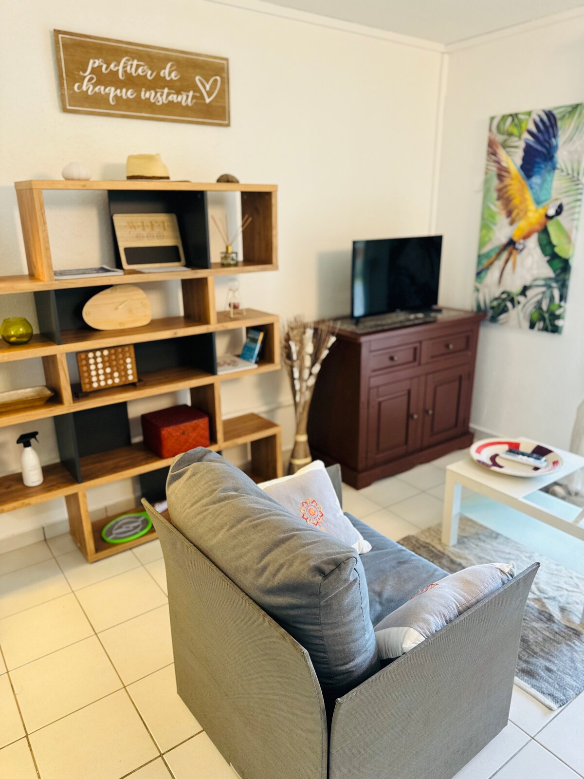 En un bonito jardín, encontrará este alojamiento nuevo situado en la parte inferior de la villa. Con entrada independiente y sin vecinos. Este lugar es tranquilo y céntrico, ya que se encuentra a 200 metros de una frutería local, una panadería, una farmacia y tiendas de alimentación. La playa de Bois Jolan está a solo 2 km. Estará cerca de las hermosas playas de la localidad de Sainte-Anne, de la Caravelle o de Bois Jolan. El alojamiento es espacioso y adecuado para una estancia en familia o con amigos.