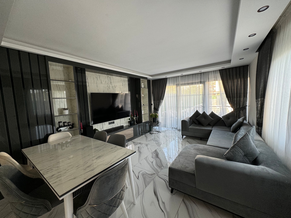 We welcome you at Antalya Airport and offer free transfer service with our Mercedes Limousine. The beach, sea, markets, banks, public transportation, restaurants, cafes, bars and entertainment venues and the local market are just a few steps away from our 3+1 bedroom house. You can prepare your meals in the spacious, fully equipped kitchen. Unlimited 100 Mbps fiber optic internet and Wi-Fi are available. The apartment has a large balcony with garden and mountain views and a private parking space