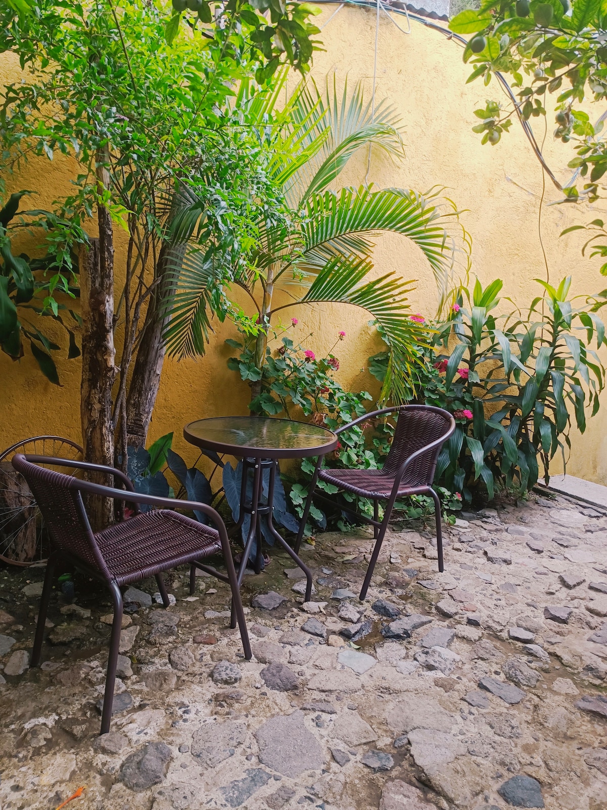 Vive la experiencia de hospedarte en el corazón de La Antigua Guatemala. A solo unas cuadras del parque, recorre estas mágicas calles a pie. Con muchos restaurantes, bares y atrcciones a solamente unos pasos pero lo suficiente como para mantenernos privados del ruido nocturno. Es un espacio acogedor diseñado para 2 personas, con todo lo necesario para estadías largas y cortas en un vecindario precioso y súper seguro. No contamos con parqueo privado y debes de subir unas gradas al llegar.