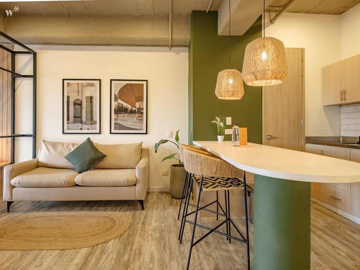 w* | Loft espléndido con aire acondicionado en Trendy Laureles Neighb