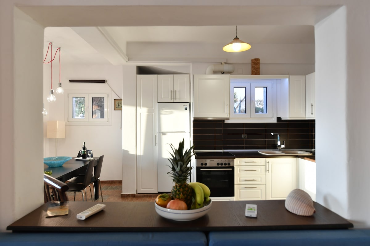 Apartamento en planta baja de estilo tradicional cicládico, en el corazón del asentamiento de Parikia. Con una ubicación ideal, ofrece tranquilidad y relajación, y una ubicación central conveniente. A poca distancia: todos los lugares de interés (antiguo mercado, castillo franco), panadería, tiendas. El mar está a pocos metros de distancia de la casa, y en 2 minutos se puede llegar a la calle junto al mar, donde se puede disfrutar de la vista de la puesta de sol. El puerto, la estación de autobuses y la parada de taxis están a 3 minutos a pie.