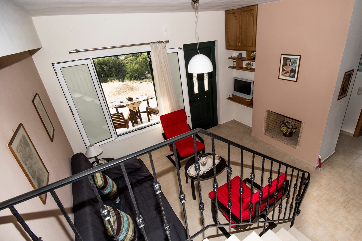 And old workshop is restored and transformed to a one bedroom house with a gallery ready to host families or friends till four people.The yard completes the scenary for the perfect holiday in lovely Plomari. Ground floor: living room, kitchen, bedroom with a double bed and a bathroom with a shower. Gallery : a double bed (not a separate bedroom)