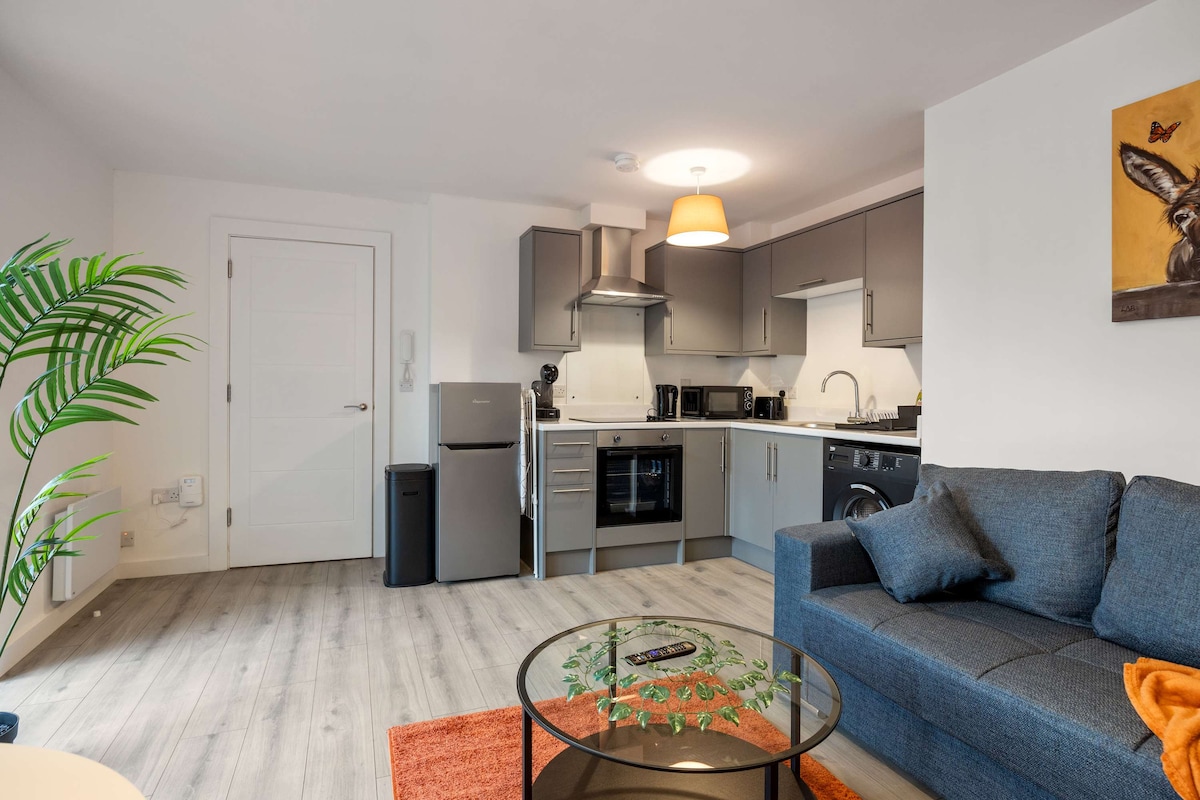 Welcome to this elegant and luxurious East Village apartment. - Historic 1850s building, restored in 2024 - Spacious living room with comfy sofas and 43” HD Smart Roku TV - Modern kitchen with all essentials and Dolce Gusto coffee machine - Fast and reliable 1000mb fibre broadband - Master bedroom with premium linens - Walking distance to city centre - East Village Belfast