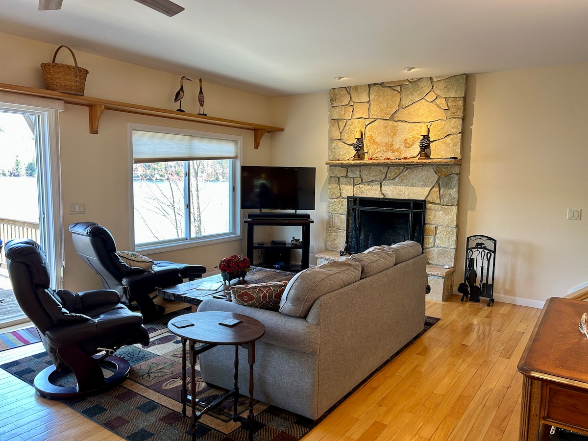 Less than an hour from Manchester, Concord & Keene, this new home offers relaxation & year-round adventure. This lakefront property has a dock, with kayaks & paddleboards. You could also walk down the paved road to the neighborhood beach & swim platform. About 30 minutes to Pats Peak, Sunapee, or Crotched Mtn ski resorts. Beds for 6, 2 full baths, W/D, fully equipped kitchen, open living space, gas fireplace, water views, gas grill, parking, firepit, internet. We do not allow pets or smoking.