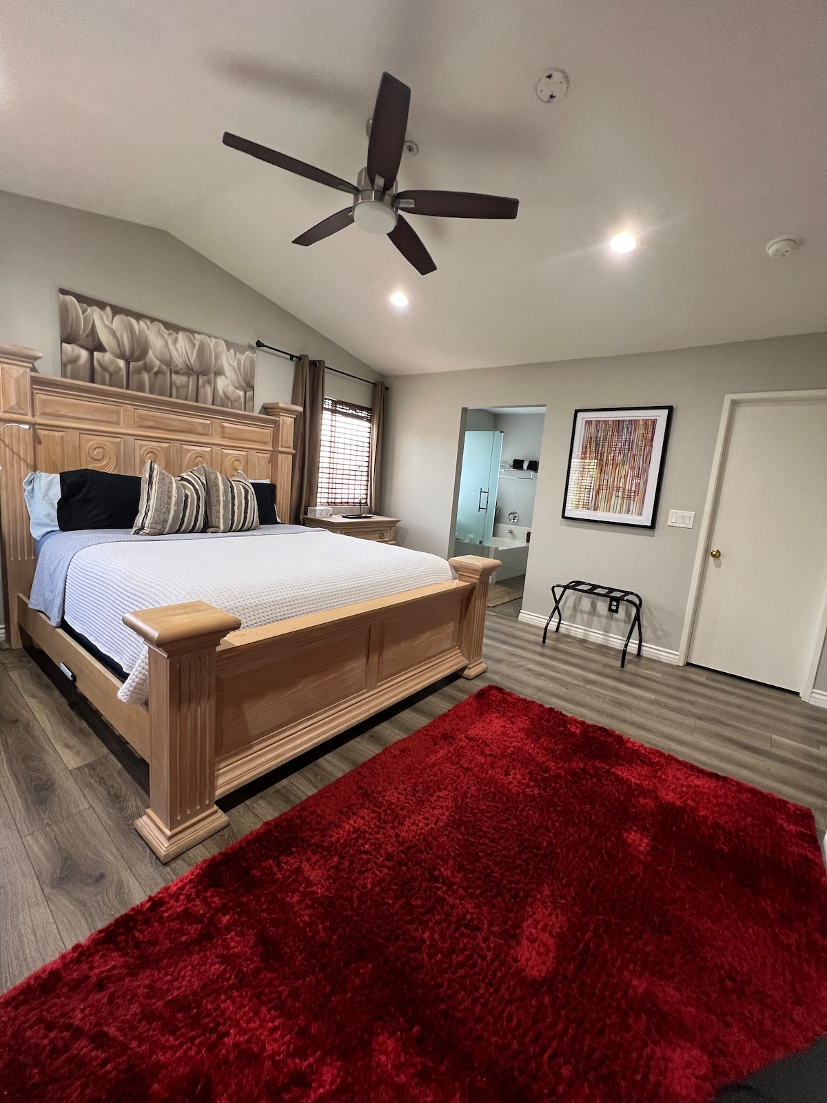 Disfruta de una experiencia de lujo en este céntrico alojamiento. Cerca de 3 autopistas principales 10/15 y 60. A 15-20 minutos del aeropuerto de Ontario, centro de Toyota, Ontario Mills, Victoria Gardens y el circuito AAA NASCAR. A 45 minutos de Los Ángeles y Palm Springs. ¡Los casinos locales Moronga, Pechanga, Yaamava y Soboba están a poca distancia en coche! ¿He mencionado que estamos a 10 minutos del aeropuerto de Ontario? ¡Móvil sin complicaciones! ¡Registro, alarma de la casa para que tú y tus pertenencias estéis seguros!