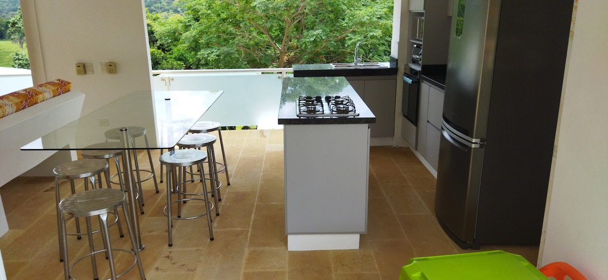 Hermosa casa en exclusivo condominio con vigilancia 24 horas. Disfruta de bellas vistas, el canto de los pájaros y el aire fresco mientras compartes momentos inolvidables con familia y amigos. Aire acon Nuestra casa cuenta con energía solar, garantizando electricidad durante fuertes lluvias que pueden causar cortes de luz en la zona. Podrás realizar actividades al aire libre como caminatas ecológicas, montar bicicleta, nadar, hacer BBQ o asados en horno de barro El apoyo doméstico es adicional.