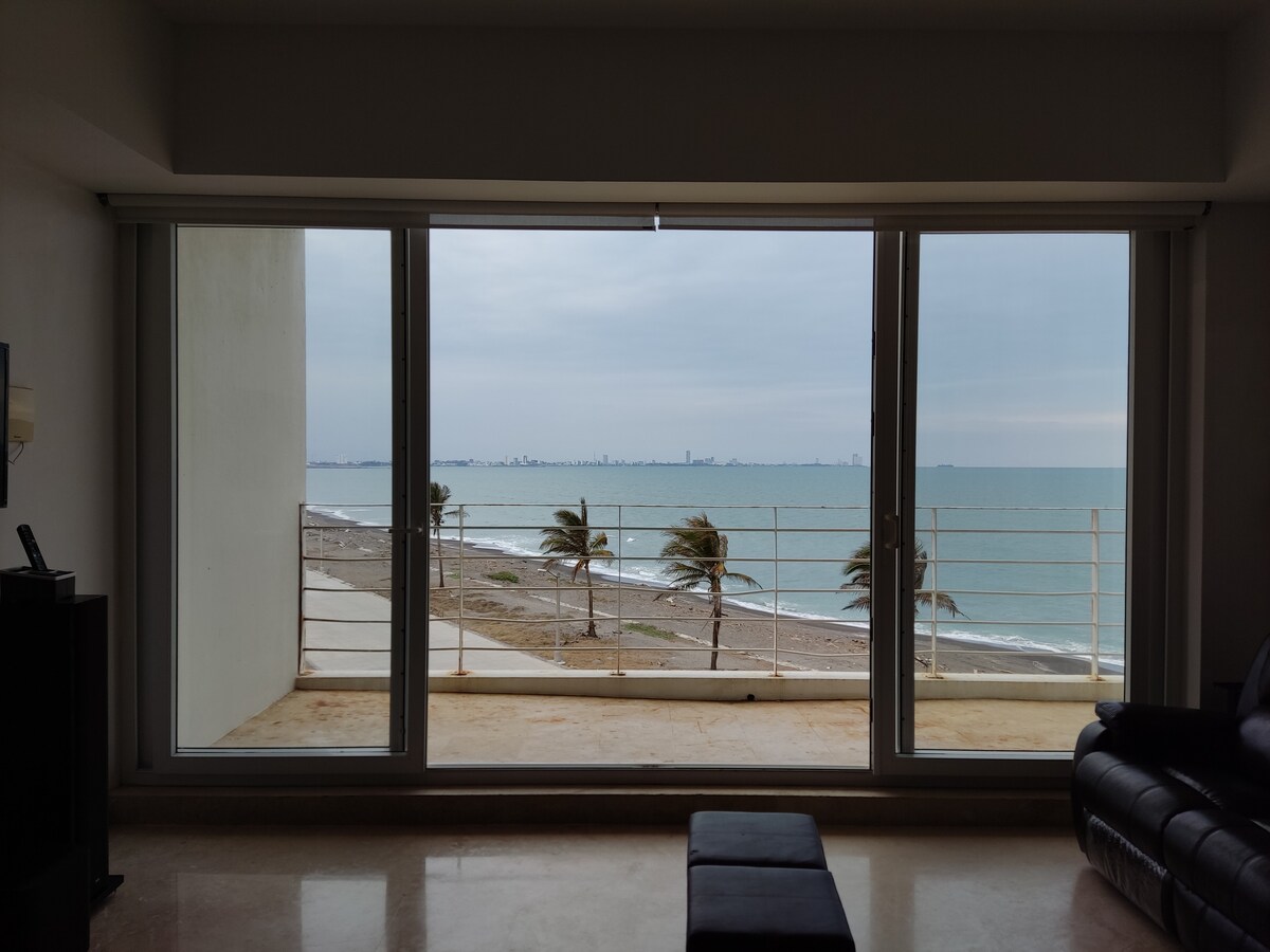 Departamento tipo Loft nuevecito frente a la mejor zona de playa de Veracruz. A pasos del famoso Acuario de Veracruz y 2 km del centro de la ciudad. Completamente climatizado y equipado con todos los utensilios de cocina, microondas, refrigerador, ollas y sartenes, cafetera, parrilla eléctrica, etc. Con una super vista pero sobre todo un espacio cómodo y agradable. NO CONTAMOS CON ESTACIONAMIENTO. La calle es segura y hay 2 guardias de seguridad 24hrs. del edificio de enfrente.