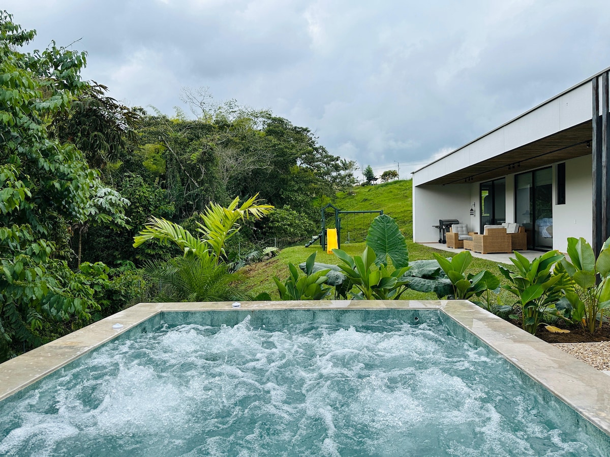 Un hospedaje con la receta perfecta: la comodidad de un alojamiento nuevo y moderno,la belleza del eje cafetero,el aire limpio,la noche estrellada,esta es una experiencia llena de tranquilidad que le recargara de energía mientras disfrutas del jacuzzi con una copa de vino y las luces de la cuidad a sus pies .Todo dentro de un marco de privacidad y excelente atención.