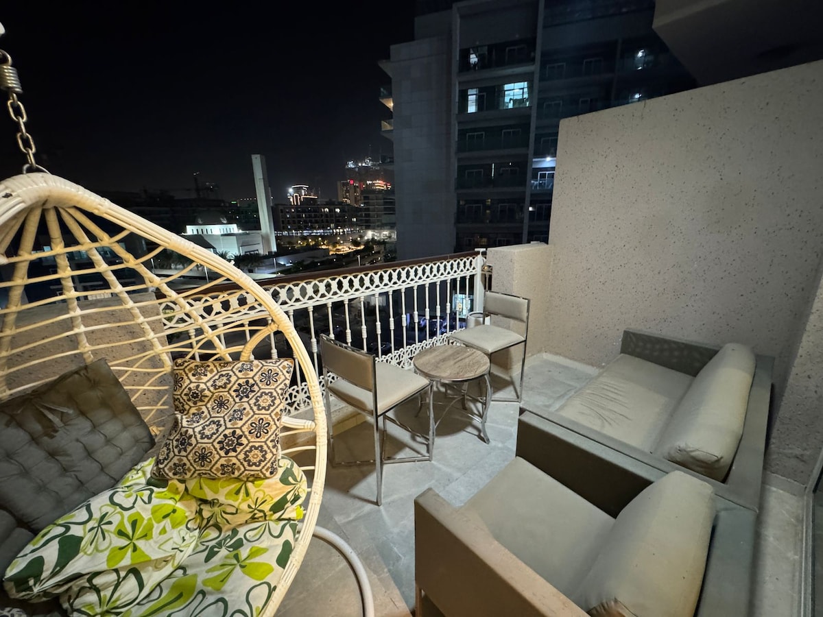 Escapada de lujo 1-BR en Dubai Hills, a 5 minutos del centro comercial