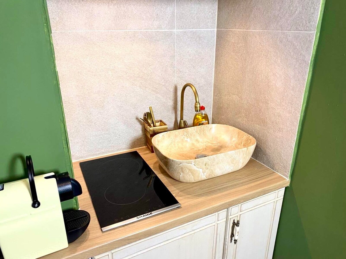 Te doy la bienvenida a Rock Dandy, una casa con una personalidad atrevida. Esta villa de piedra de tres pisos, ubicada en un pequeño y encantador complejo, ofrece vistas impresionantes del Oráculo de Delfos, las montañas de los alrededores, el valle y la ciudad de Itea. A más de 900 metros de altura, parece que estás disfrutando del sol y las nubes desde un asiento de primera clase en la naturaleza. El interior es sofisticado pero acogedor, y combina el lujo discreto con la calidez y el confort.