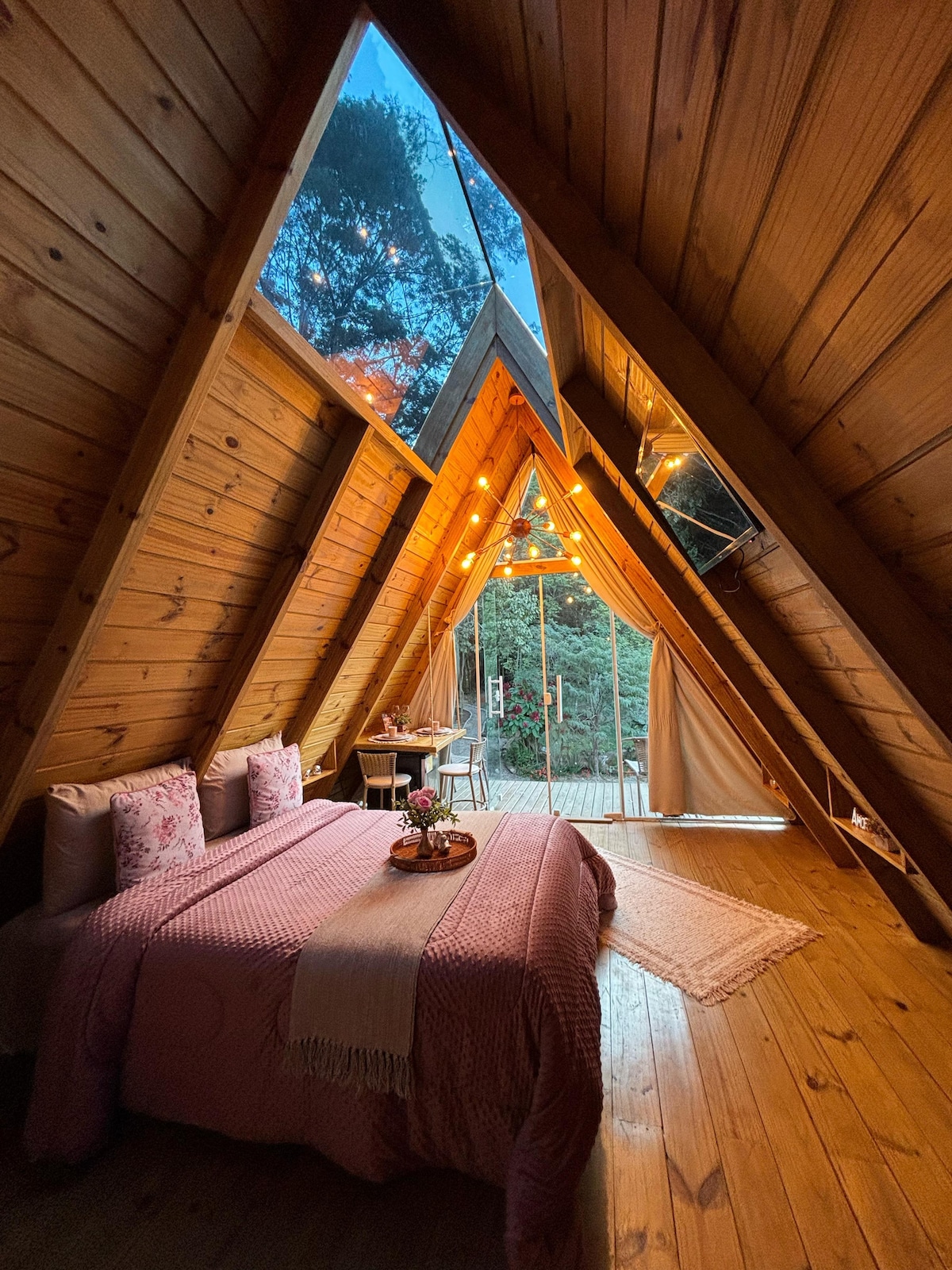 El Loft São José es una cabaña completa y lujosa con cerramiento de vidrio (techo y paredes), cortinas motorizadas de techo, proyector de 100'', bañera de inmersión interna, chimenea interna, fogata, jacuzzi externo, sauna y salón externo, todo construido sobre una terraza de madera con vista al bosque y amplio espacio externo, para disfrutar del contacto con la naturaleza con mucha comodidad, lujo, privacidad y tecnología. ¡Tus mejores momentos están aquí!