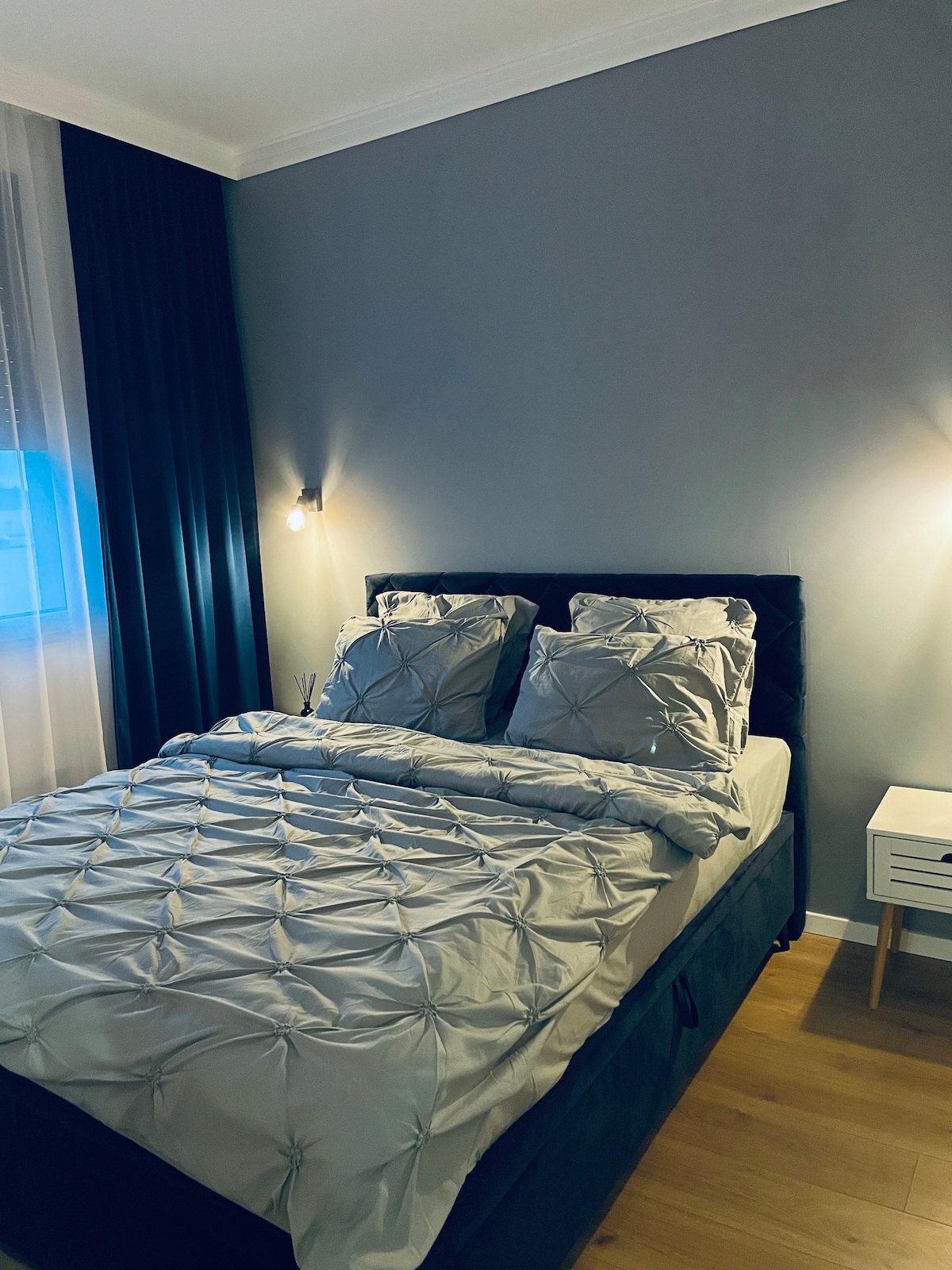 ⭐ Bucură - te de apartamentul modern, nou construit, cu parcare acoperită și securizată ⭐ Living spațios cu canapea extensibilă , dormitor cu pat matrimonial, bucătărie complet utilată și baie modernă oferă tot confortul doritorilor de călătorie. Ideal pentru 4 persoane, într-o zonă liniștită centrală. Dotări: TV, fier și masă de călcat, uscător de păr, suport de uscat rufe, încălzire prin pardoseală automatizată, aer condiționat clădire cu lift.