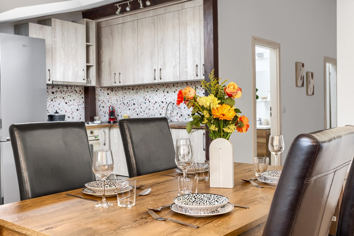 El apartamento está ubicado en el centro de la ciudad, en una excelente zona, a solo 2 minutos del teatro, restaurantes, pubs o parque. SkyView consta de dos dormitorios con camas tamaño queen, dos baños, una amplia sala de estar con TV inteligente y una cocina totalmente equipada. Desde el dormitorio o el baño, los huéspedes pueden mirar directamente al cielo a través de las ventanas Velux. SkyView está diseñado para proporcionar un espacio cómodo para parejas, familias o viajeros de negocios que buscan una estancia memorable en Arad.