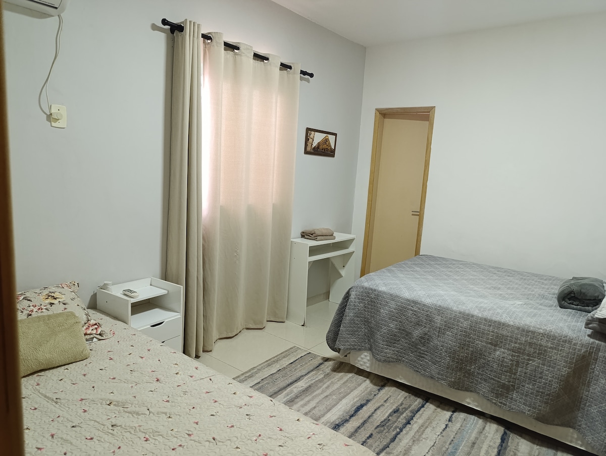 Casa de hospedes, pequena mas aconchegante climatizada com ar condicionado e uma pequena cozinha para refeições rápidas, perfeito para viajantes sozinhos ou casais a lazer ou trabalho. Estrutura para 2 pessoas, local seguro e com opção de supermercado e restaurante na mesma rua. Bom custo benefício. ÁREA DE LAZER COMPARTILHADA NÃO É PERMITIDO FESTAS CASA PRINCIPAL NO MESMO TERRENO NÃO É PERMITIDO CONVIDADOS SEM AUTORIZAÇÃO