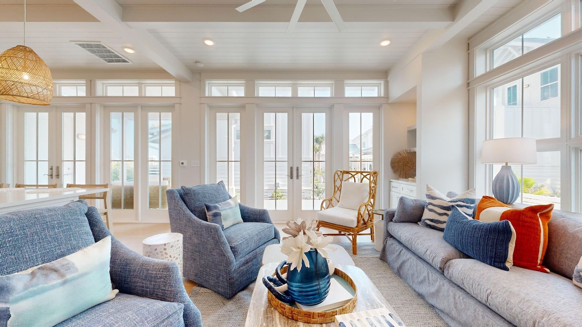 A POCOS PASOS de la PLAYA encontrarás nuestra casa de playa de 3 pisos con 3 dormitorios y 2,5 baños. Ubicados en el barrio de La Playa, en el lado del golfo, estamos a solo unos pasos de la PLAYA a través de nuestro paseo marítimo privado accesible para nuestros huéspedes. Disfrutá de tu café de la mañana y de los tragos de la noche en uno de los dos hermosos patios al aire libre con vistas al Golfo de México. ¡Tenemos unas vistas impresionantes de 360° de Port A! Ubicado fuera del marcador de playa 7, ¡este lugar es inmejorable! ¿Qué estás esperando? ¡Reservá la vista!