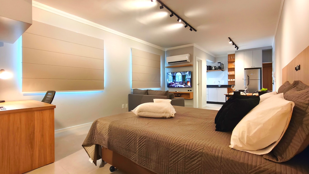 Studio aconchegante e bem equipado, ideal para duas pessoas, mas acomoda até 4 pessoas. Fácil acesso a BR101, rodoviária, pertinho do centro de Joinville e a poucos minutos da via gastronômica. - Ambiente moderno e funcional - Espaço para home office e WiFi de 600mb - Cozinha totalmente equipada - Equipado com lava e seca - Self-check-in prático e seguro