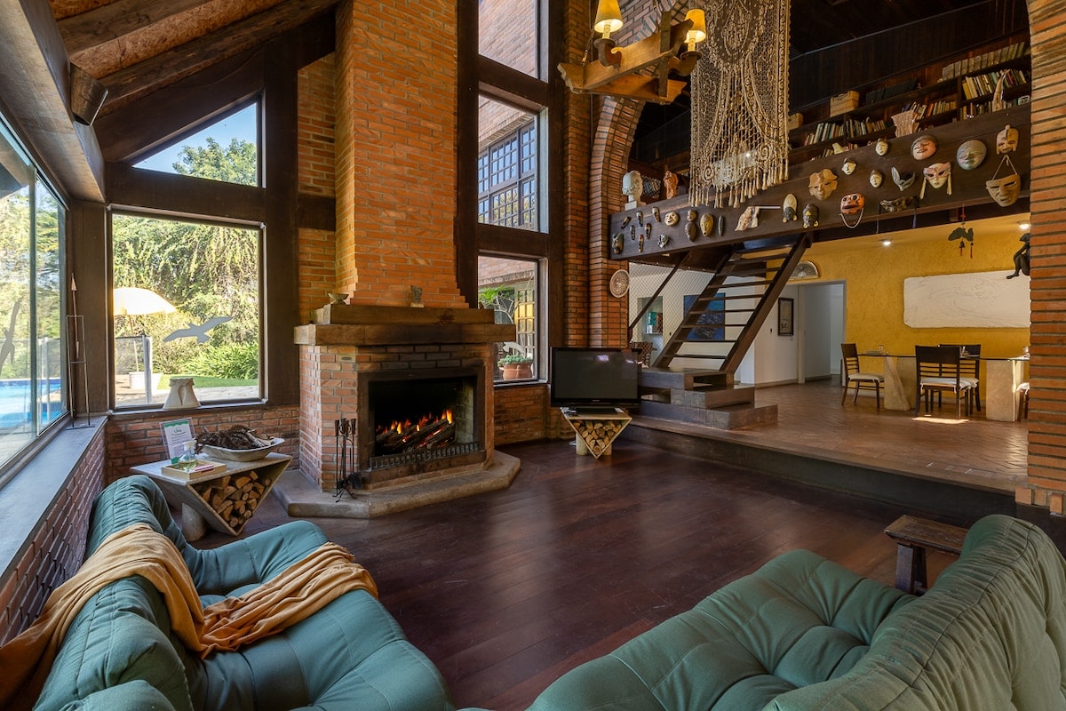 Son 425 m2 de área construida. ¡Una casa en la ciudad con aires de casa de campo! Despiértate con el sonido de los pájaros, da paseos por el bosque bajo los árboles y haz ejercicio en un gimnasio al aire libre. Estancia con todas las comodidades y el encanto de un hotel, pero con toda la calidez y practicidad de un hogar. Lugar espacioso y tranquilo, con una ubicación privilegiada, cerca de bares, restaurantes, lugares de interés, así como varios proveedores de servicios.