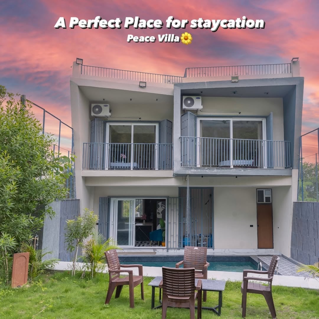 Qué ofrecemos • Casa de campo exclusiva de 1 dormitorio con pileta privada: ideal para escapadas tranquilas • Paquetes 🌸 personalizados: cenas a la luz de las velas, decoración y celebraciones • Organización de 🎉 eventos: • Sesiones previas a la boda • Roka, Haldi, ceremonias de anillos • Cumpleaños, aniversarios • Fiestas privadas de día o de noche • 🌅 Hermosos exteriores: jardín, vistas al atardecer y sonidos naturales • 🦚 Naturaleza: avistá pavos reales y pájaros desde la azotea