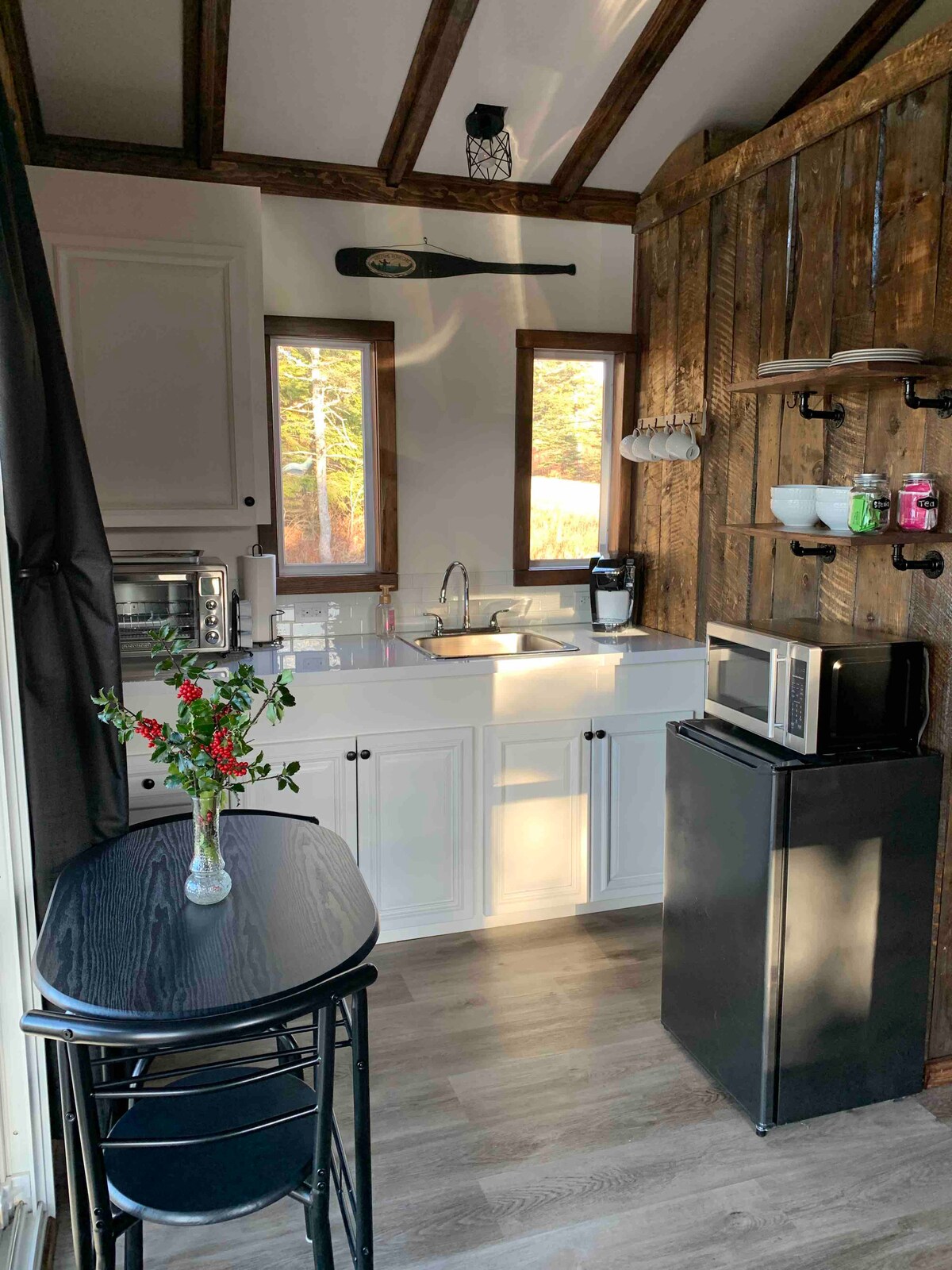 ¡Te damos la bienvenida a The Boathouse! Convenientemente ubicado en el municipio de Barrington, conocido como la capital de la langosta de Canadá. Relájate en esta cabaña rústica de construcción única situada junto al mar. Con la marea alta, te despertarás con el sonido de las olas chapoteando debajo de tu ventana. Disfruta de las hermosas vistas desde las cubiertas exteriores o coge un kayak y explora. La vida silvestre está por todas partes. Cuando caiga la noche, siéntate y relájate junto al fuego mientras contemplas el océano. ¡Disfruta de tu estancia!