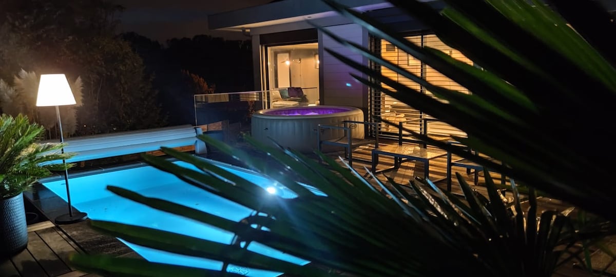 Villa with Heated Pool & Private Spa near Annecy. Treat yourself to a relaxing getaway in this 105 m² villa nestled in a peaceful setting just a few minutes from Annecy. Enjoy the heated pool and private spa all year round — perfect for a wellness retreat, a romantic weekend, or a family holiday surrounded by the mountains. Located between the lake and the ski resorts, this bright and cozy home with a private garden is the ideal place to recharge in every season.