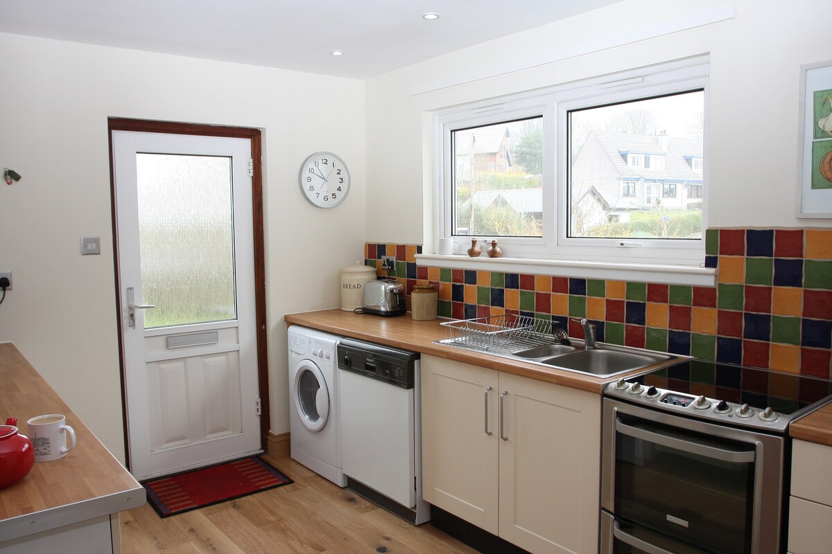 Nos gustaría darte la bienvenida a Craigrowan Croft, donde tenemos una encantadora casa de campo independiente de 2 dormitorios llamada An Sean Tigh (The Old House). Tiene un dormitorio doble, un dormitorio con dos camas individuales, un baño con bañera y ducha separadas y una bonita cocina/comedor/sala de estar. Se beneficia de la calefacción por suelo radiante en todas partes y de una acogedora estufa de combustible múltiple para acurrucarse frente a ella. Se encuentra a solo 5 minutos a pie de las tiendas locales y a 10 minutos a pie de 3 encantadores restaurantes y un acogedor pub.