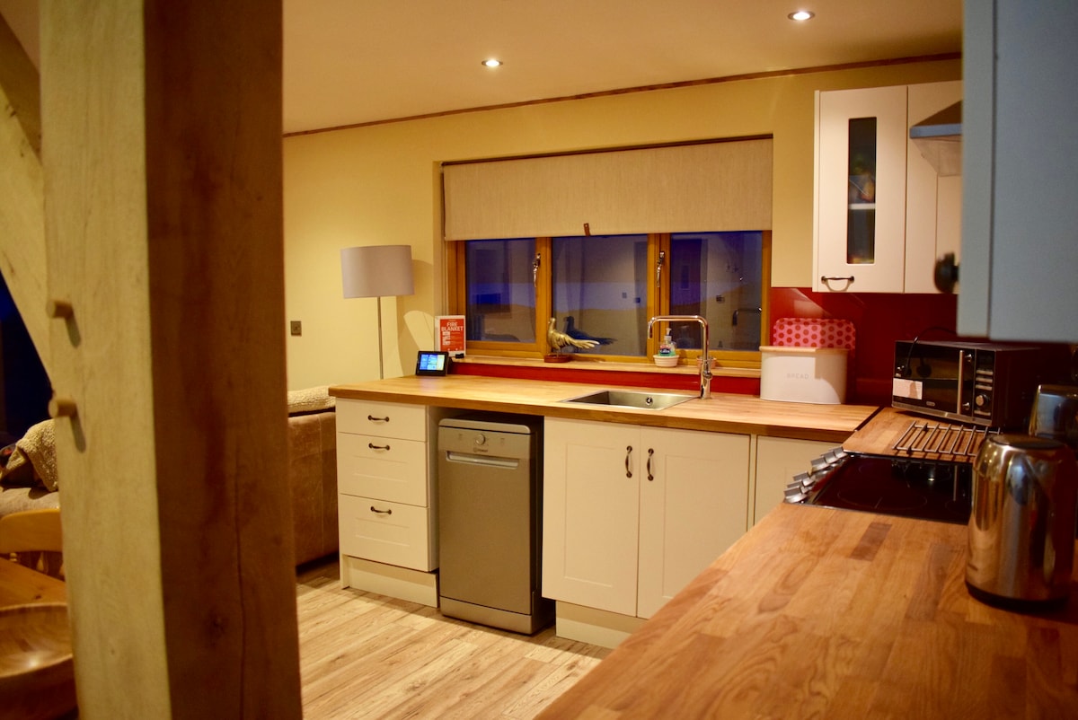 Located rurally, though not isolated, just 11 miles from Oban. The perfect cosy, highland hideaway to relax, recharge & reconnect. Stunning mountain views from upper garden. Perfect for a couple or family due to open-plan design. Fully equipped kitchen, superfast broadband & room darkening blinds in both sleep areas. No cleaning fee added on. Car essential. Free parking to door. Max of 4 persons. No extra persons please. Double bedroom + 2nd king size sleep space on open-plan mezzanine area.