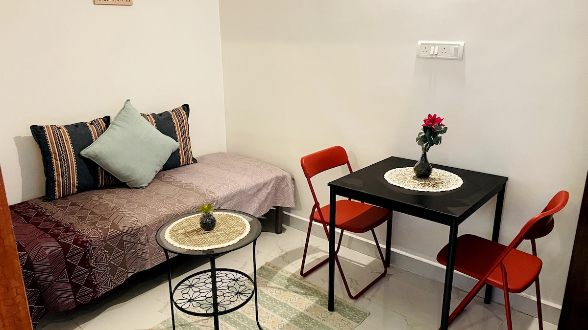Te damos la bienvenida a nuestro acogedor y moderno departamento en Jayanagar 4th Block, uno de los barrios más transitables y vibrantes de Bangalore. Ya sea que estés de visita por trabajo, una escapada o una estadía larga, este 1BHK cuidadosamente diseñado te brinda comodidad, privacidad y un acceso inmejorable a todo, desde los mejores restaurantes y cafés hasta parques, tiendas y transporte público. Perfecto para parejas, viajeros solitarios, nómadas digitales y huéspedes de negocios que buscan un espacio cómodo y tranquilo para relajarse, recargar energías y explorar.