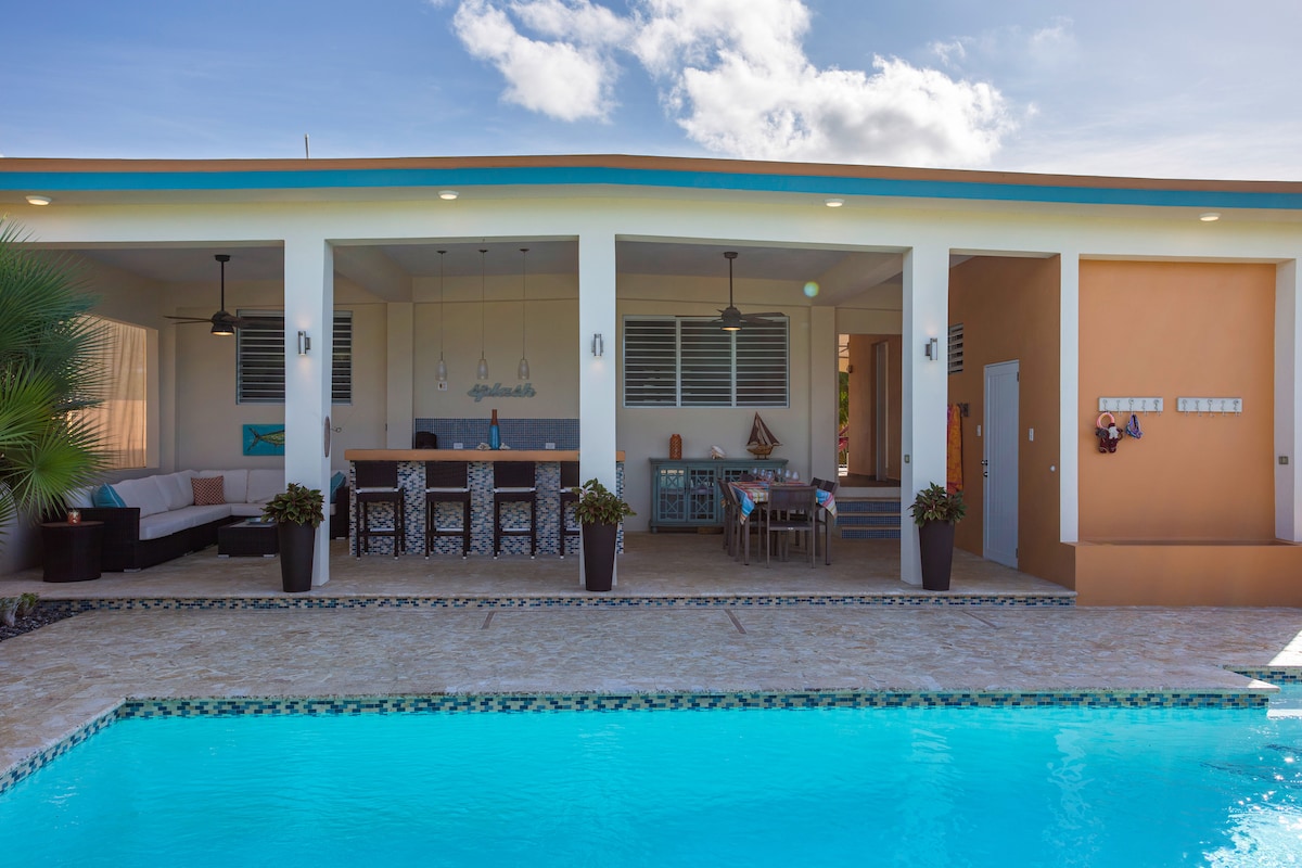 Beautiful home with private pool, heated jacuzzi, BBQ, and basketball court. AC in all rooms, plenty of parking, and a closed street for kids’ safety. Includes solar panels, battery backup, and water cistern for emergencies. Grill in your private outdoor kitchen with the convenience of a mini fridge, outdoor bathroom and shower. Whether you're enjoying the house and back yard, or visiting the nearby beaches, restaurants, and shopping areas, your stay will be absolutely perfect.