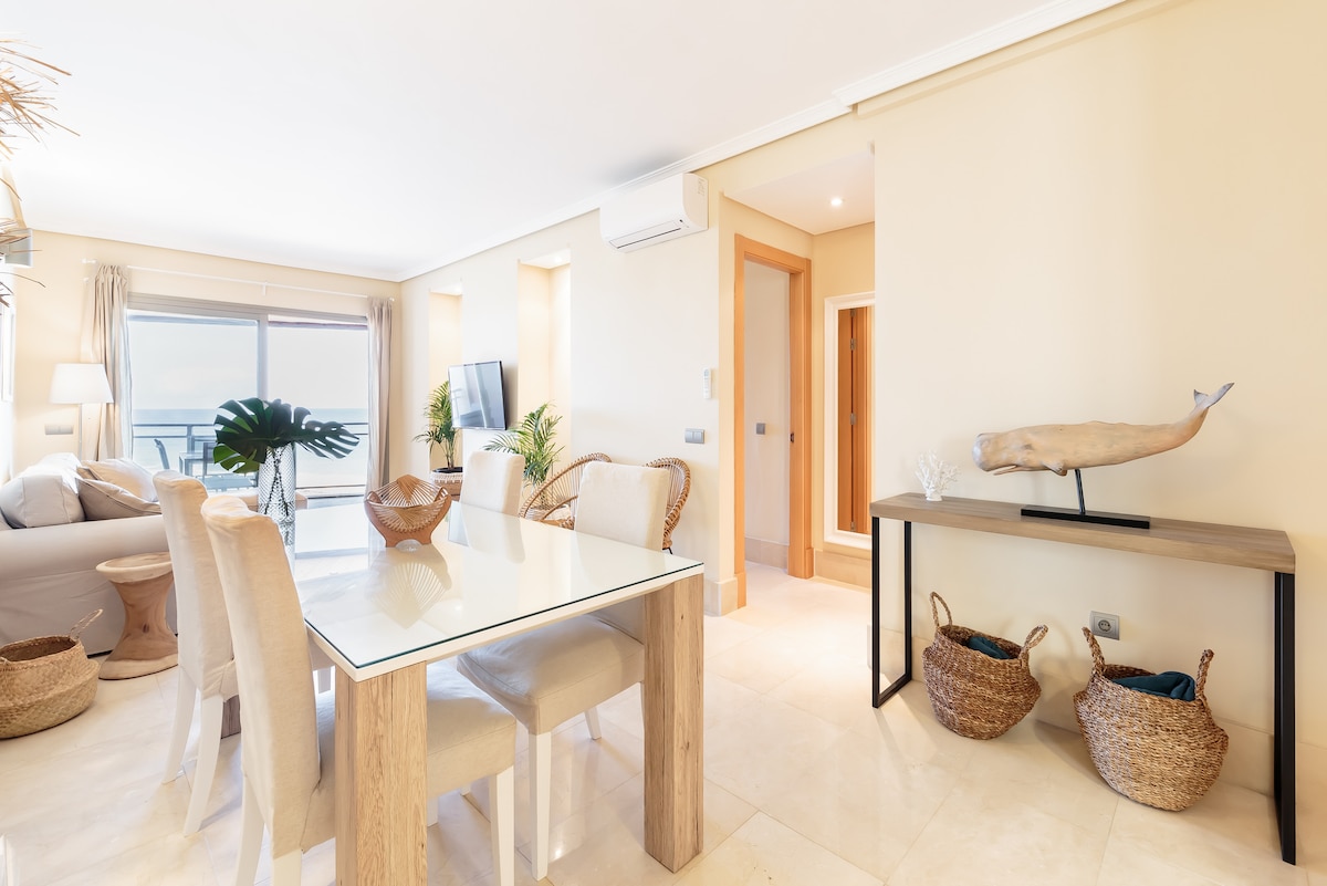 Exclusivo apartamento, ubicado en primera de línea de playa. Aquí encontrará todo lo que necesita para disfrutar de sus vacaciones en la isla. Disfrute del azul del mar desde la sala y de la habitación principal. Apartamento totalmente equipado, con terraza, cocina, dos habitaciones y baño completo. Ubicado a 15 metros de la playa, a 150 mt de la marina, estación de bus, supermercados y restaurantes. Situado a 18 km del aeropuerto.
