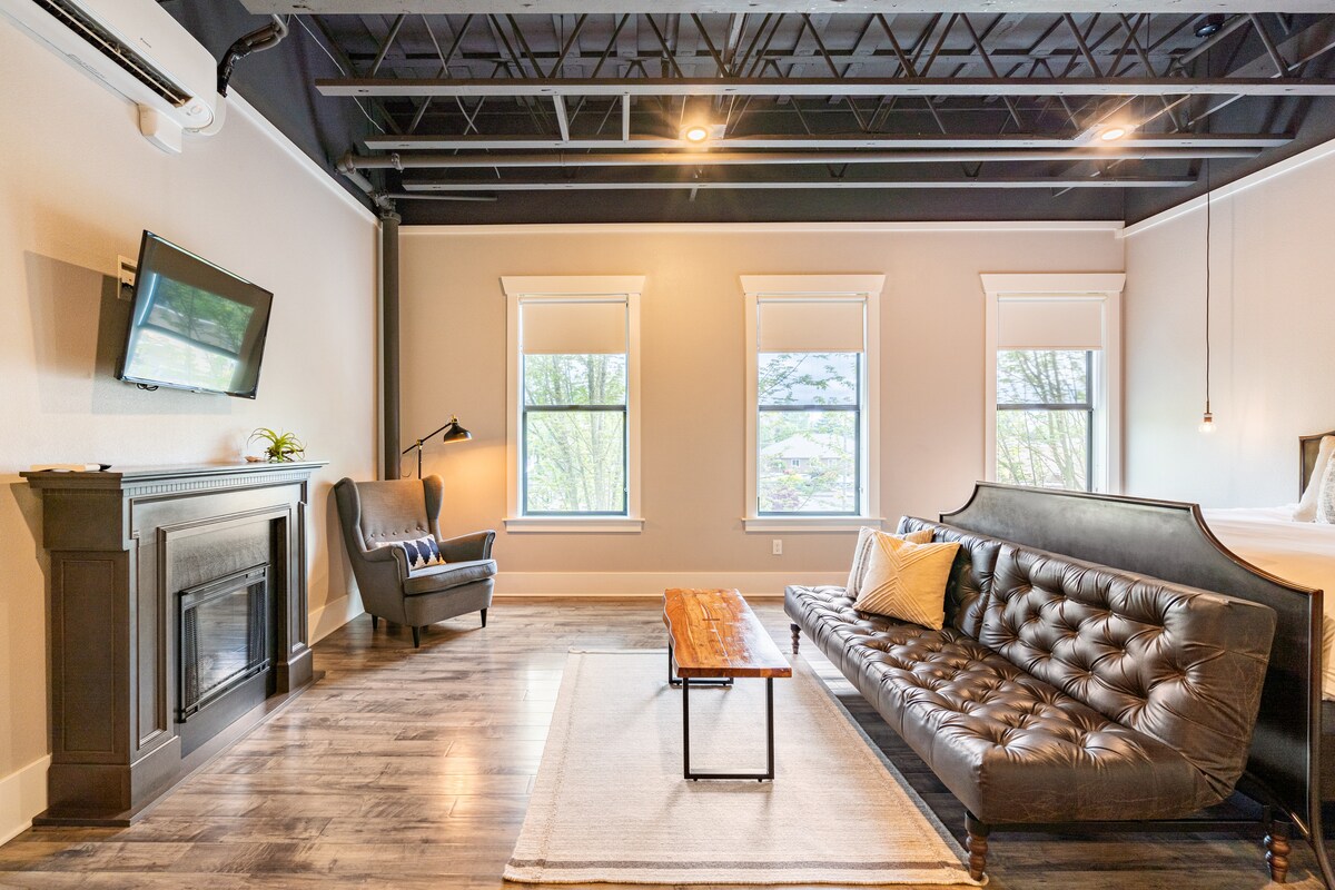 Steps away from world class tasting rooms & directly above local hotspot, Red Hills Market, our loft is located in the center of it all. Decorated with a blend of rustic wine country and industrial modern elements, our great room style studio, includes a living room area with a sleeper sofa. Measuring 600+ square feet, it is quite spacious and comfortable. Residing above Red Hills Market adds to the appeal & offers endless opportunities for fun...wood fired pizza, wine & more!