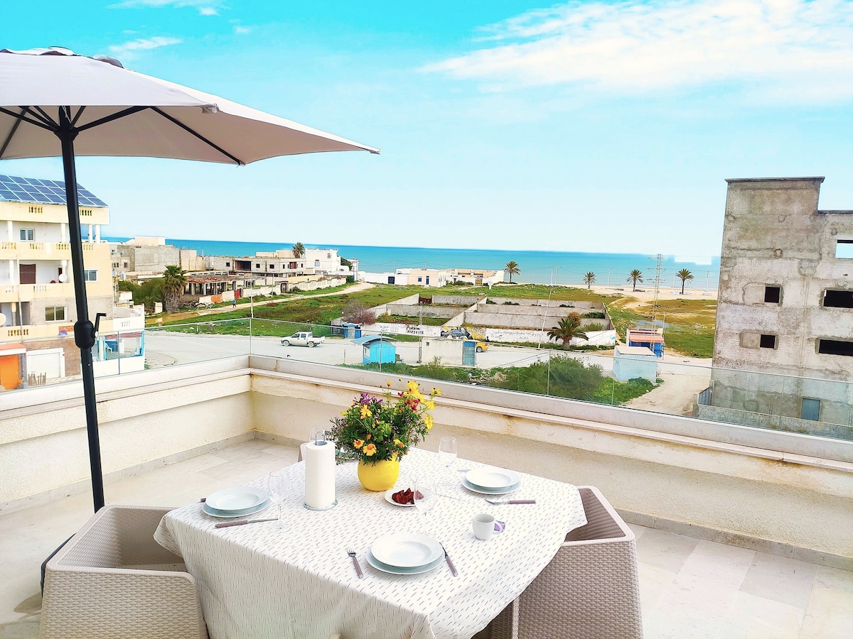 Hammamet appt avec vue mer + plage privée